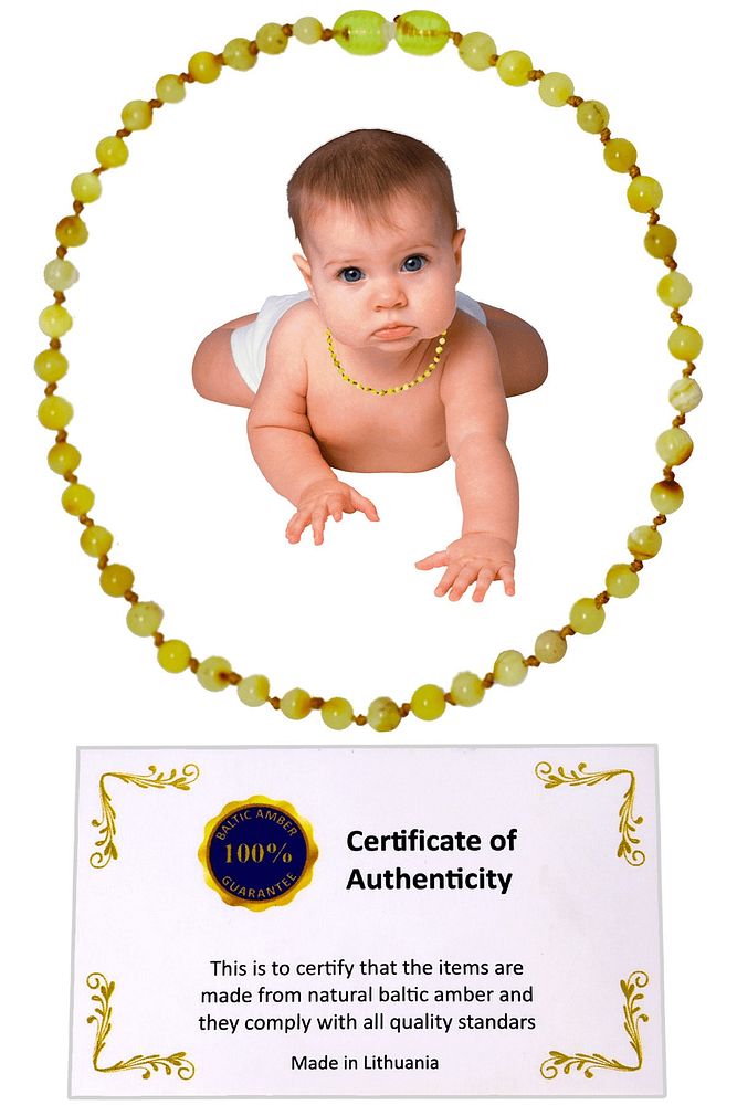 Sertifikalı Sarı Renkli Mat Doğal Damla Kehribar Bebek Diş Kolyesi
