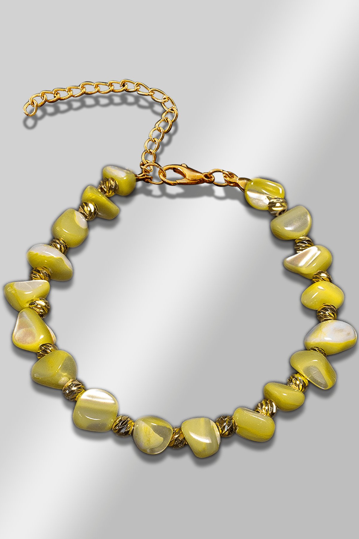Sertifikalı Sarı Renkli Sedef Taşı Bileklik - Ayarlamalı (Altın Kaplama)