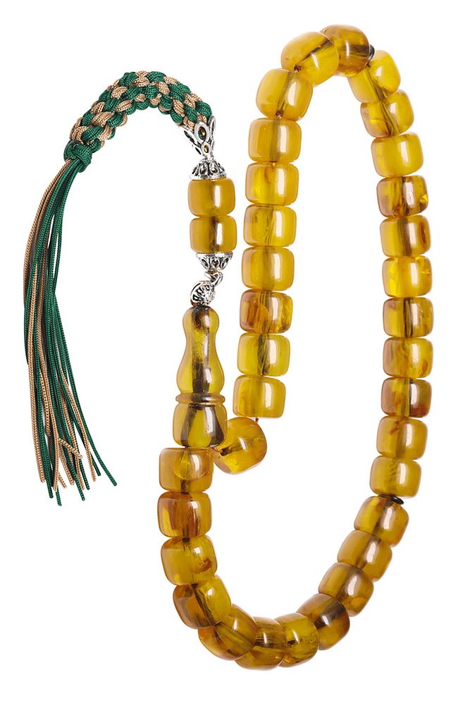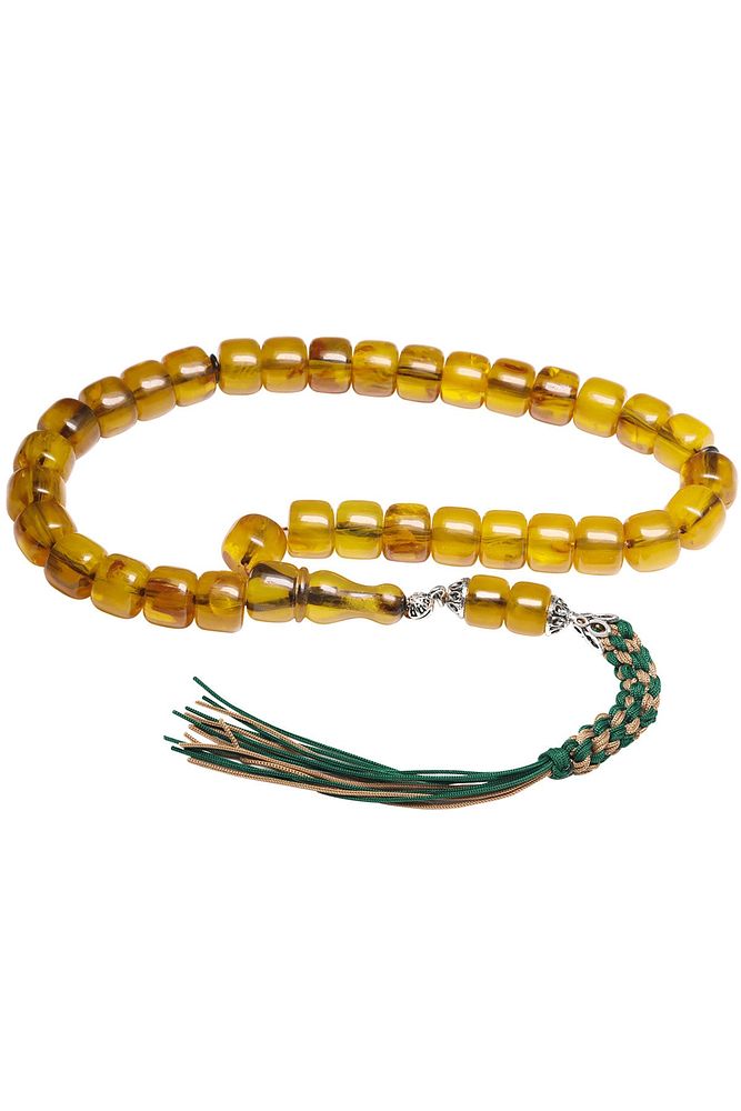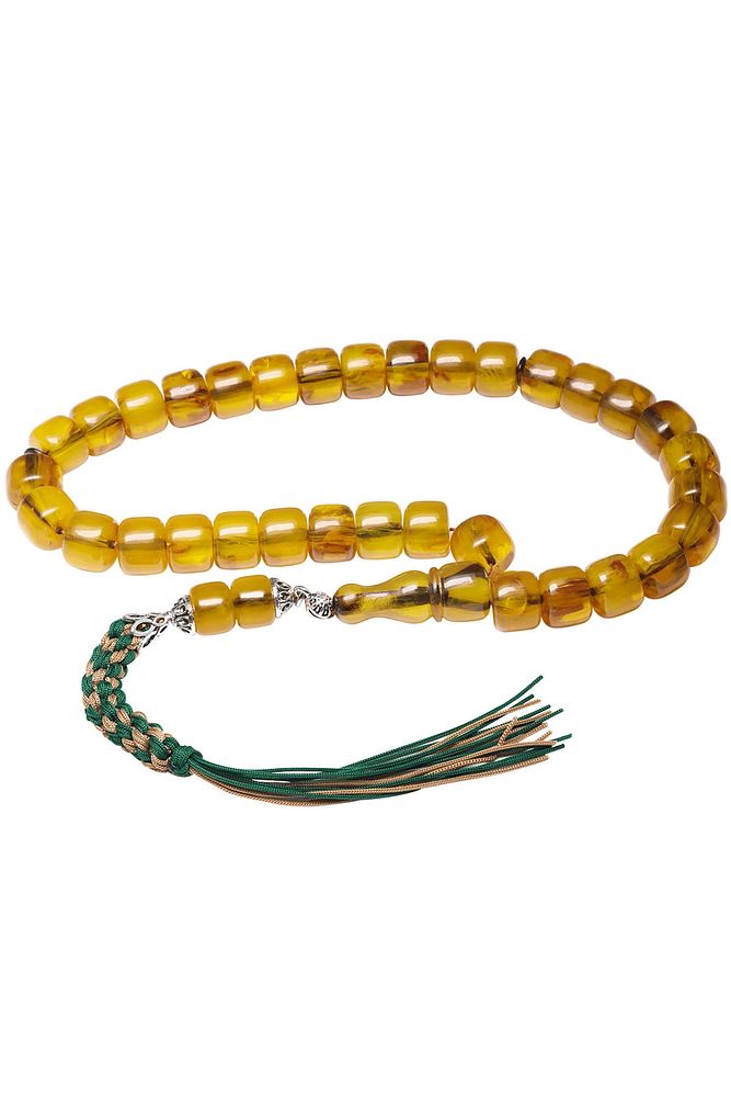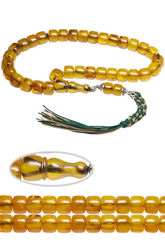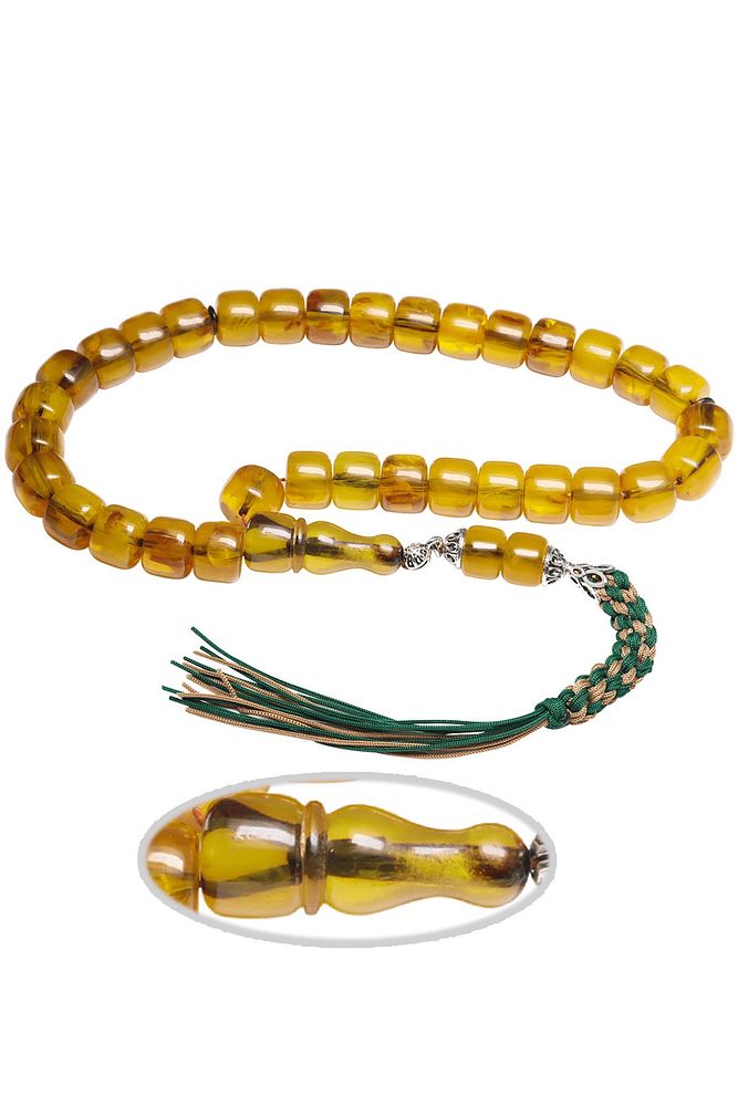 Sertifikalı Sarı Renkli Yeşil Kahverengi Sıkma Kehribar Tesbih
