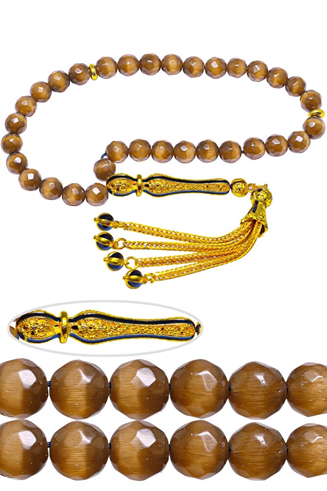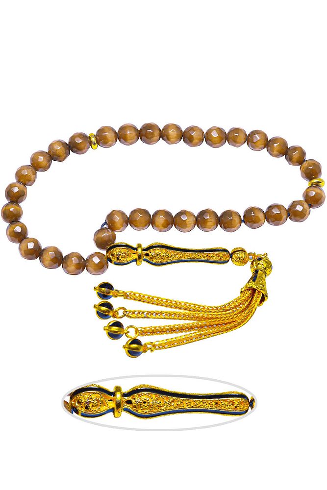 (Para - Sağlık - Pozitif Enerji Taşı) Kuvars tesbih modelleri, \'\'Tesbih Atölyesi\'\' Atölyelerinde ustalarımız tarafından kuru torna işciliği ile elde özen ile tane tane işlenmektedir. Ürünlerimiz el işciliği olduğu için sınırlı sayıda üretilmektedir. Tasarımlarımızda kullandığımız taşlar Dünya\'nın en kaliteli doğal taşlarını kullanmaktayız. Tasarımlarımızda kullandığımız doğal taşların hiç biri birbirinin aynısı olmadığı için küçükte olsa farklılık gösterebilir. Doğal taşlar vücudunuza temas ettiği anda negatif enerjilerinizi alır ve pozitif enerjiler verir. Bu tasarımda; Füme renkli doğal dumanlı kuvars taşı ve Sarı siyah mineli 24 ayar altın kaplama imame ve püskül seti kullanılmıştır. Çift kaplama atıldığı için renk atmaz ve kararmaz bir yapıya sahiptir. Yedek ip ile gönderim sağlanır. Üretildiği Taş; Kuvars; Ana Renk; Doğal Renk; Ağırlık; 20-30 gr; Tane Şekli; 8x8 mm; Tane Ölçüsü; Küre Kesim; Toplam Uzunluk; 20-30 cm; İmame ve Püskül Maddesi; Düşük Ayar Gümüş;