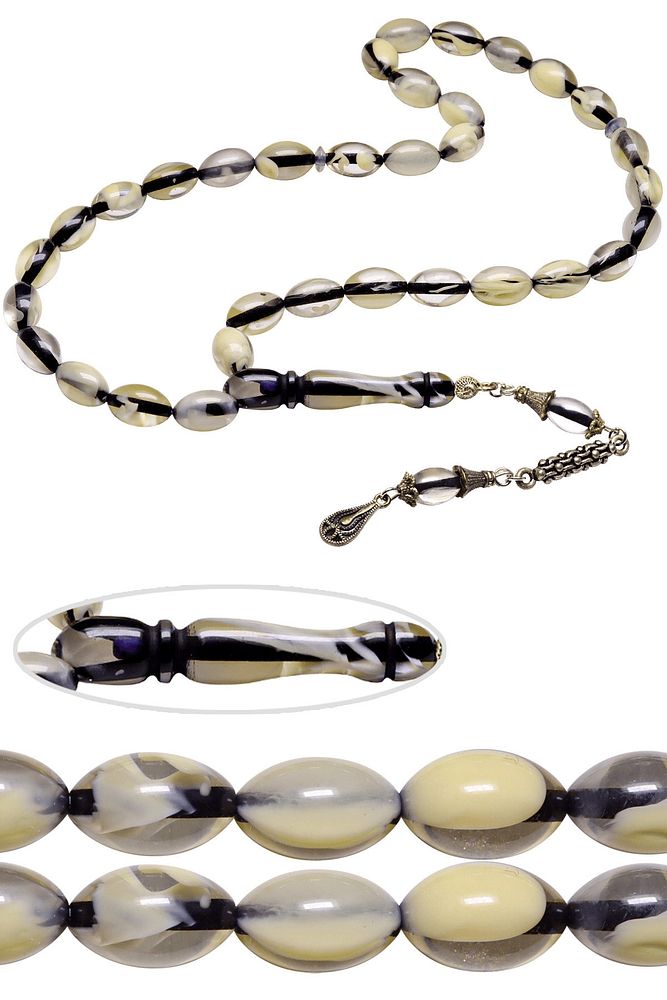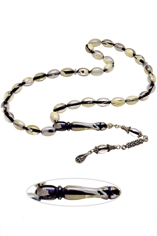 Sertifikalı Şeffaf Delim Siyah Beyaz Renk Hareli Toz Kehribar Tesbih