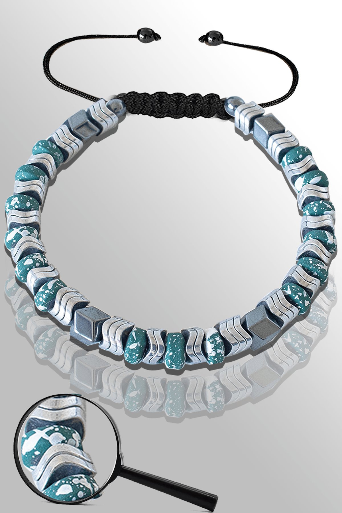 Sertifikalı Silver Renk Çavuş Model Yeşil Karlı Hematit Taşı Bileklik