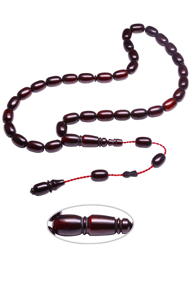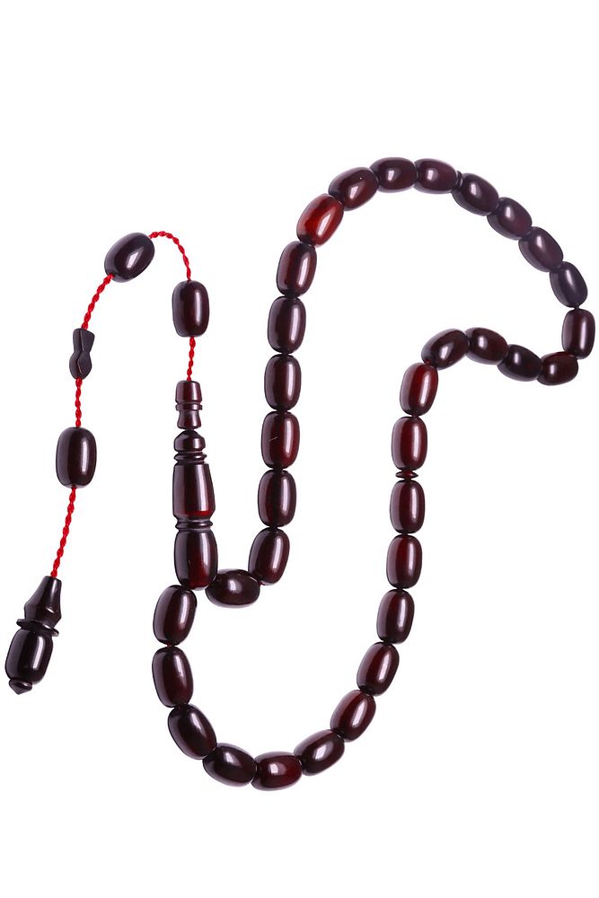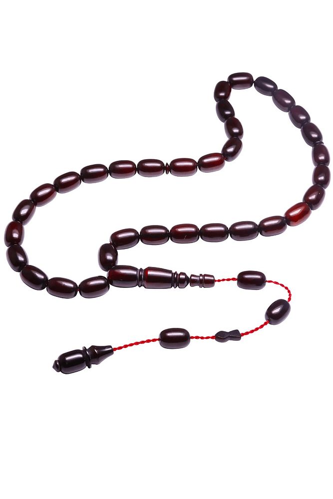 Sertifikalı Sistemli Bordo Renk Osmanlı Benzetmesi Çubuk Sıkma Kehribar Tesbih