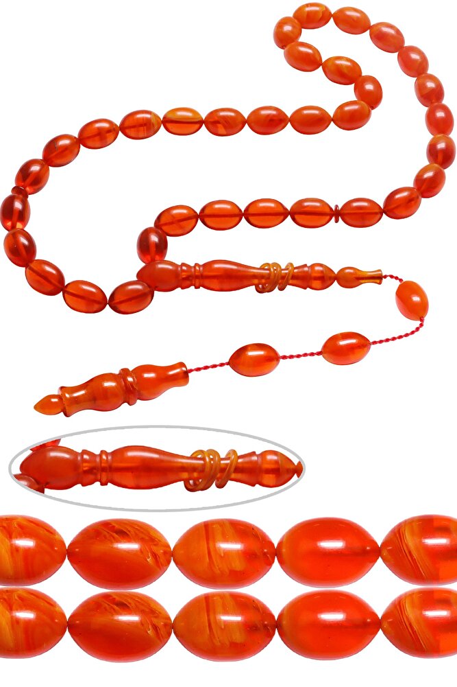 (Baş Ağrısı Sinir ve Stres); ; Tesbih Atölyesi, Sıkma kehribar tesbih, tasarımları özel olarak usta ellerde tasarlanır. Tasarımlarımız el yapımı olup sınırlı adette üretilmektedir. Tasarımlarda kullanılan püsküller düşük ayar gümüşten imal edilir. Tasarımlarda kullanılan kehribar taneleri hareli özel kalıplardan yapılır. Yapay reçine ile üretilmektedir. Ürünlerimiz renk almakta ve koku vermektedirler. ; ; Bu tasarımda; Turuncu renkli özel 1.kalite sıkma kehribar reçine kullanılmıştır. Her kehribar tanesi birbirinin aynısı olmadığı için küçükte olsa farklılıklar gösterebilir.; ; Üretildiği Malzeme; Sıkma Kehribar; Ana Renk; Turuncu Renk; Ağırlık; 20-30 gr; Tane Şekli; 8x12 mm; Tane Ölçüsü; Beyzi Kesim; Toplam Uzunluk; 20-30 cm; İmame ve Püskül Maddesi; Sistemli;