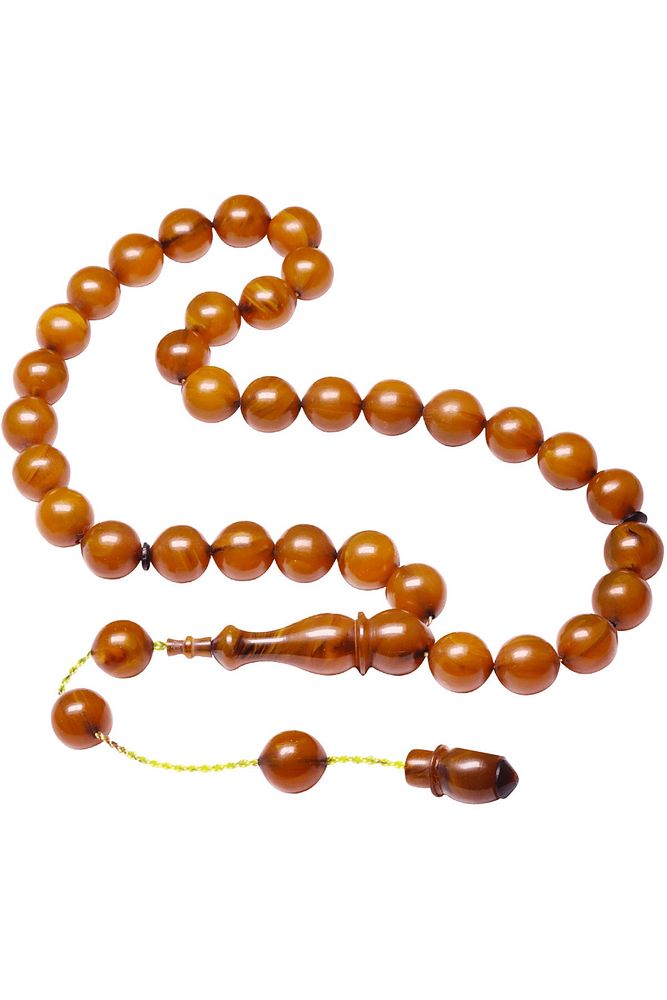 (Baş Ağrısı Sinir ve Stres) Tesbih Atölyesi, Sıkma kehribar tesbih, tasarımları özel olarak usta ellerde tasarlanır. Tasarımlarımız el yapımı olup sınırlı adette üretilmektedir. Tasarımlarda kullanılan püsküller düşük ayar gümüşten imal edilir. Tasarımlarda kullanılan kehribar taneleri hareli özel kalıplardan yapılır. Yapay reçine ile üretilmektedir. Ürünlerimiz renk almakta ve koku vermektedirler. Bu tasarımda; Kayısı renkli yoğun hareli özel 1.kalite sıkma kehribar reçine kullanılmıştır. Her kehribar tanesi birbirinin aynısı olmadığı için küçükte olsa farklılıklar gösterebilir. Üretildiği Malzeme; Sıkma Kehribar; Ana Renk; Kayısı Renk; Ağırlık; 20-30 gr; Tane Şekli; 9x10 mm; Tane Ölçüsü; Küre Kesim; Toplam Uzunluk; 20-30 cm; İmame ve Püskül Maddesi; Sistemli;