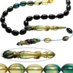 (Ağrı Kesici, Sinir Stres ve Bereket Taşı); Ateş kehribar tesbih modelleri, ”Tesbih Atölyesi” Atölyelerinde ustalarımız tarafından kuru torna işciliği ile elde özen ile tane tane işlenmektedir. Ürünlerimiz el işciliği olduğu için sınırlı sayıda üretilmektedir. Tasarımlarımızda kullandığımız reçineler Dünya’nın en kaliteli reçineleridir. Kısa bir süre içerisinde renk alır ve koku verir. Ürünleriniz orijinallik ve garanti belgesi ile gönderilir. Tasarımlarımıza üç kat cila atılmıştır. Muhteşem bir çekime sahip koleksiyonluk ve günlük çekim için ideal ürünlerdir.; Bu tasarımda; Mavi şeffaf renkli özel hareli 1.sınıf kaliteli renk alan ve koku veren kaliteli ateş kehribar reçine kullanılmıştır. Her kehribar tanesi birbirinin aynısı olmadığı için küçükte olsa farklılıklar gösterebilir.; Üretildiği Malzeme; Ateş Kehribar; Ana Renk; Mavi Şeffaf Renk; Ağırlık; 20-30 gr; Tane Şekli; 7.5×11.5 mm; Tane Ölçüsü; Beyzi Kesim; Toplam Uzunluk; 20-30 cm; İmame ve Püskül Maddesi; Sistemli;