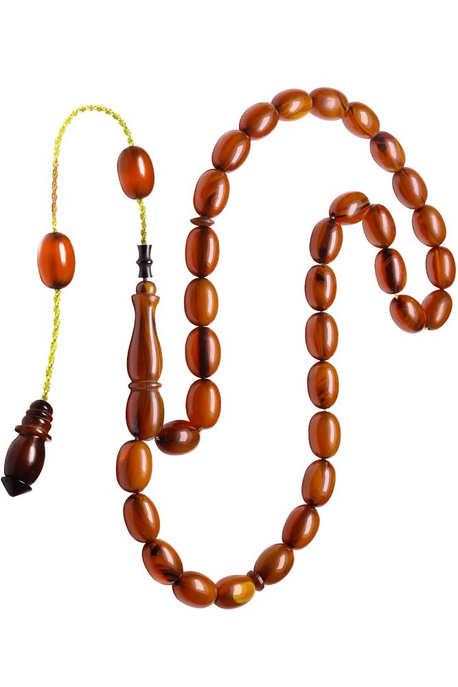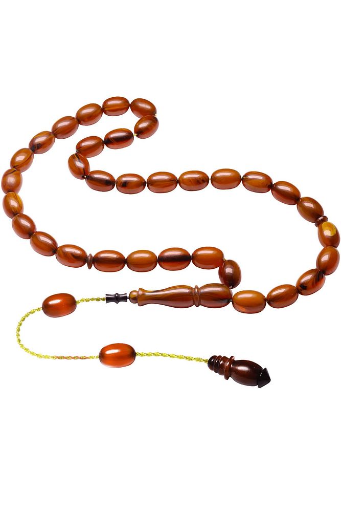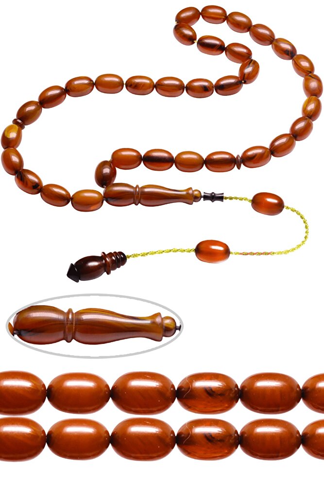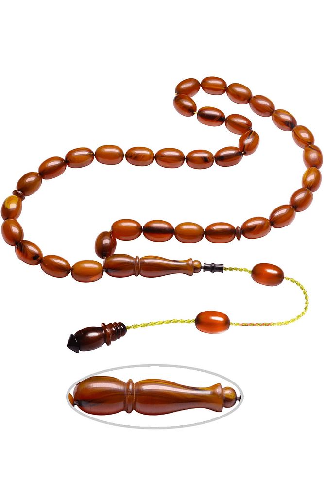 Sertifikalı Sistemli Turuncu Renk Osmanlı Benzetmesi Çubuk Sıkma Kehribar Tesbih
