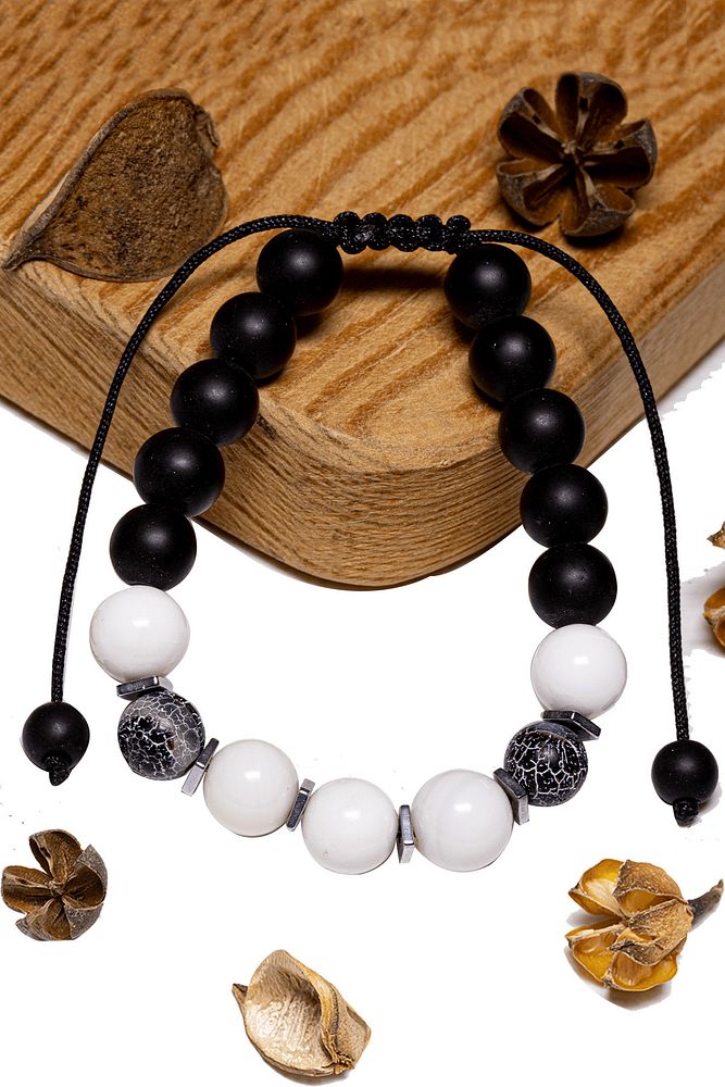 Sertifikalı Siyah Akik - Sedef Taşı Bileklik - Makrome