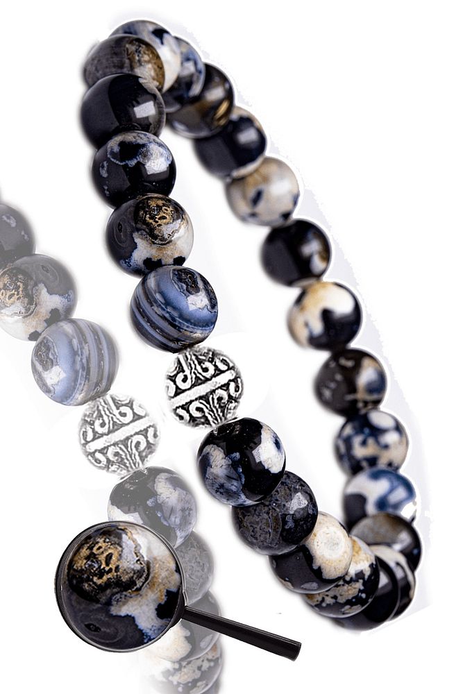 Sertifikalı Siyah Beyaz Tibet Akik Taşı Bileklik - 1.kalite