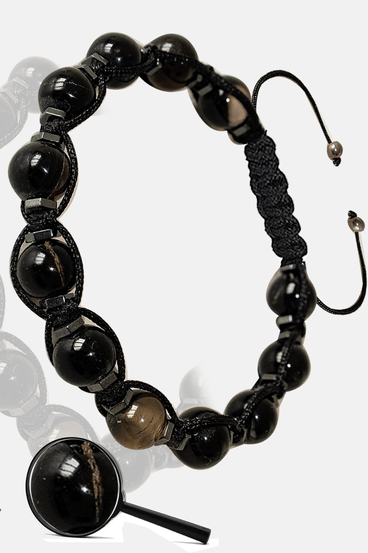 Sertifikalı Siyah Göz Akik Taşı Bileklik - Makrome