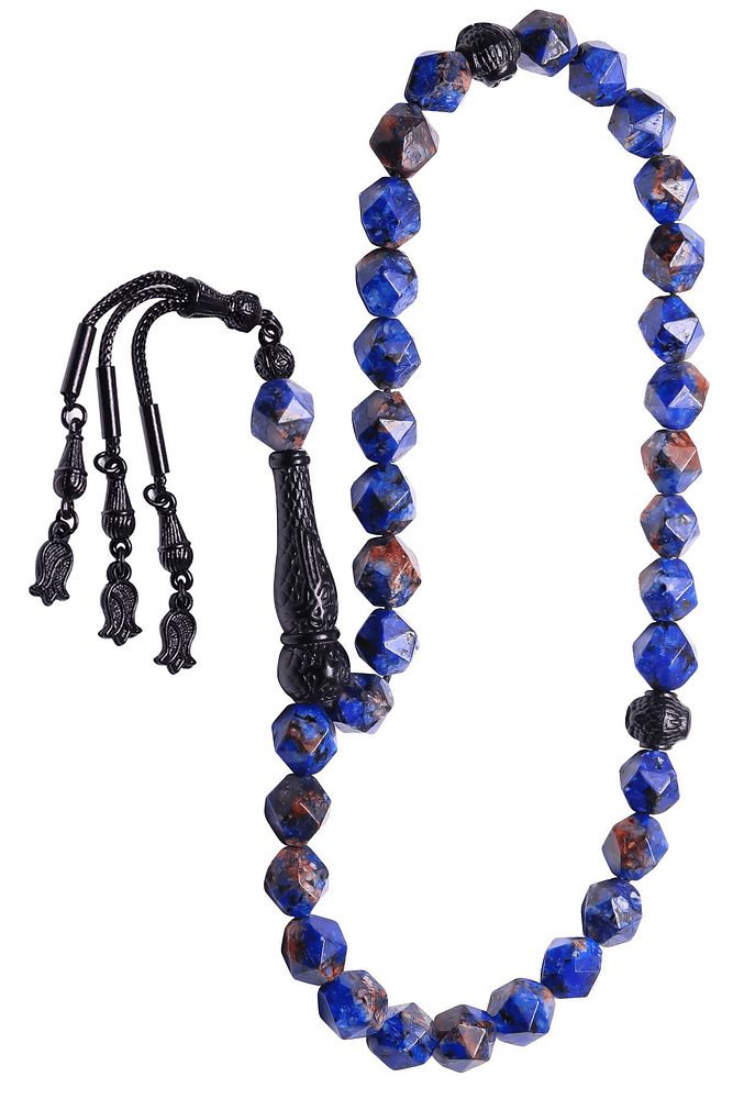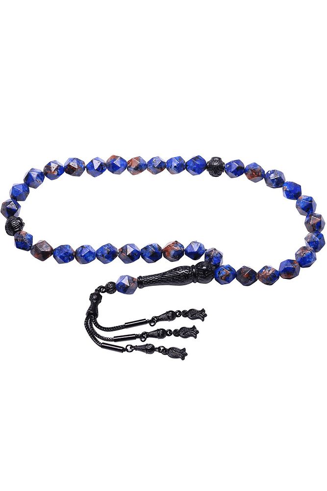 Sertifikalı Siyah Kararmaz Püskül Fasetli Doğal Lapis Lazuli Taşı Tesbih