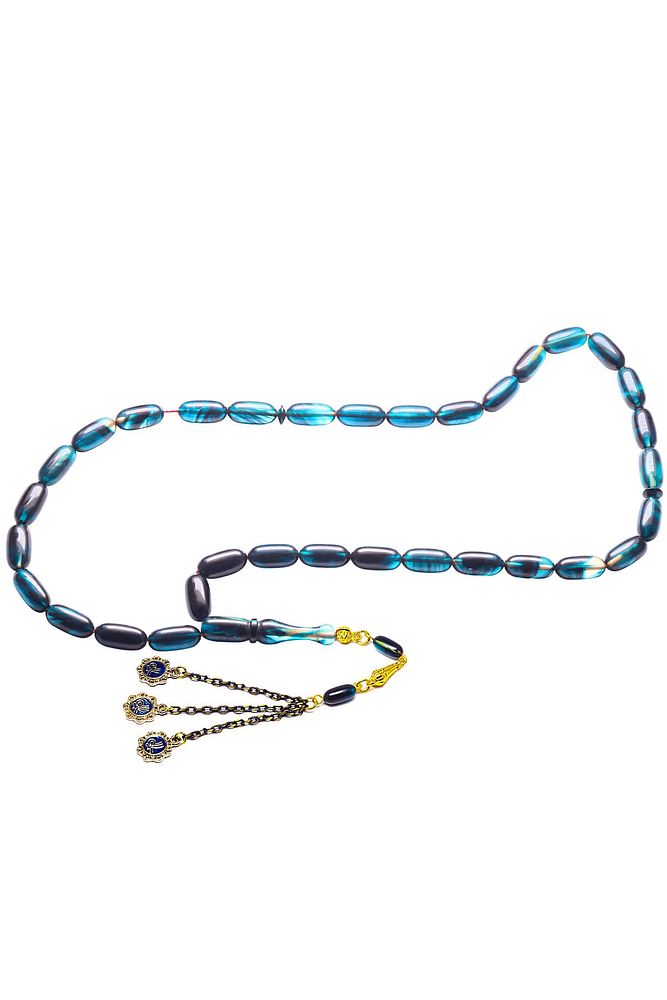 Sertifikalı Siyah Mavi Renkli Sıkma Kehribar Tesbih