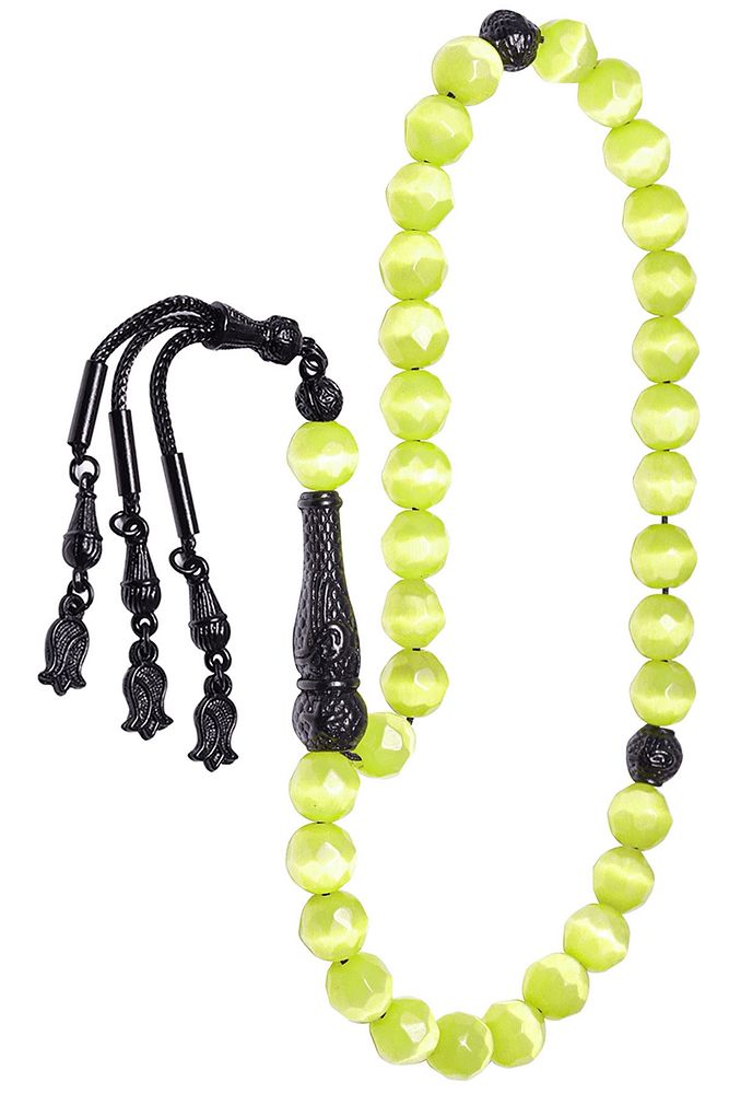 Ürün ya da Doğal Taş Açıklaması; ; (Baş Ağrısı, Sinir ve Stres Taşı); ; Kedi gözü taşı tesbih modelleri, ''Tesbih Atölyesi'' Atölyelerinde özen ile işlenmektedir. Dünya'nın en kaliteli doğal taşlarını ithal etmekte ve işlemekteyiz. Ürünlerimiz el işciliği olduğu için sınırlı sayıda üretilmektedir. Tasarımlarımızda kullandığımız doğal kedi gözü taşıdır. Ruh beden arasındaki dengeyi sağlar. Pozitif enerjiler verecek negatif enerjilerinizi alacaktır. Sinir ve stres taşı olarak bilinmektedir.; ; ''Bu tasarımda; Sarı renkli kedi gözü taşı kullanılmıştır. İmame ve püskül yapımında; Siyah nikel püsküllü çift rodaj atıldığı için renk atmaz bir yapıya sahiptir. Zaman içerisinde kullanımda renk alır ve çektikçe kararır. Enerjisinin temizlenmesini 2 günde bir toprağa 10 dakika bırakarak üzerindeki negatif enerjileri atabilirsiniz.''; ; Üretildiği Taş; Kedi Gözü Taşı; Renk; Doğal Renk; Ağırlık; 20-30 gr; Tane Şekli; 8x8 mm; Tane Ölçüsü; Küre Kesim; Toplam Uzunluk; 20-30 cm; İmame ve Püskül Maddesi; Düşük Ayar Gümüş;