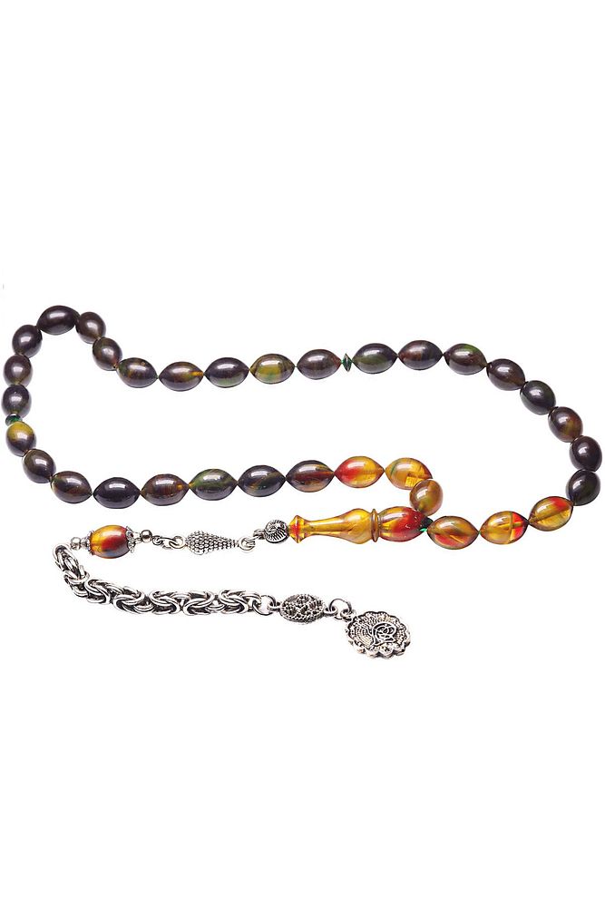 Sertifikalı Siyah Sarı Renkli Sıkma Kehribar Tesbih
