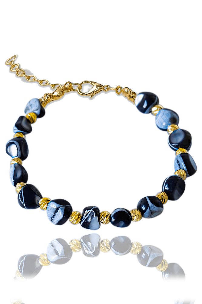 Sertifikalı Siyah Sedef Taşı Bileklik - Ayarlamalı
