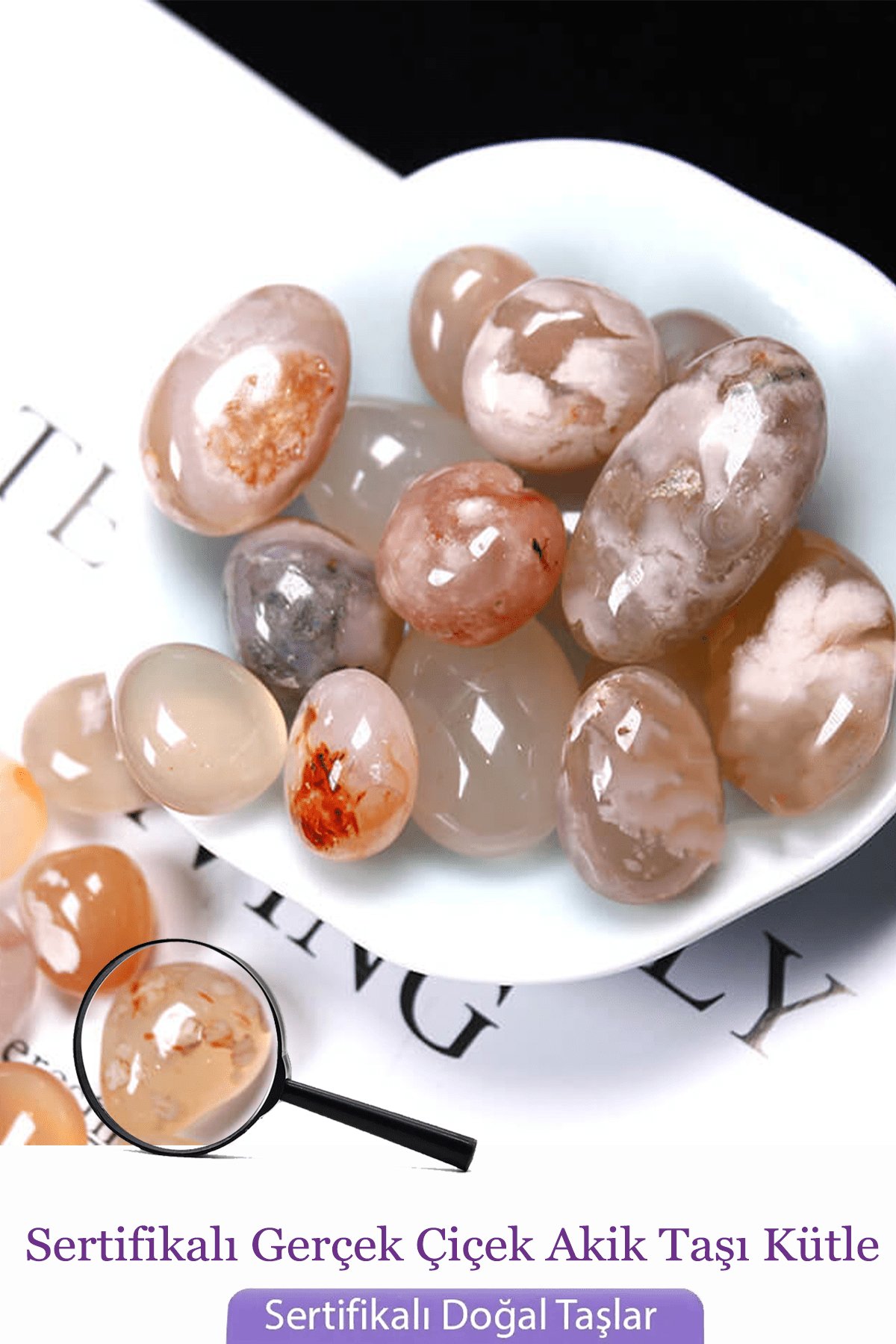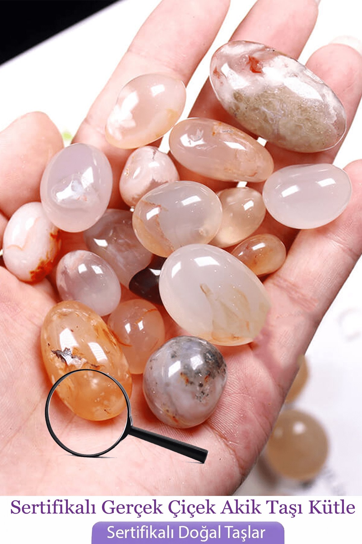 Sertifikalı Tamburlanmış Çiçek Akik Taşı Kütle