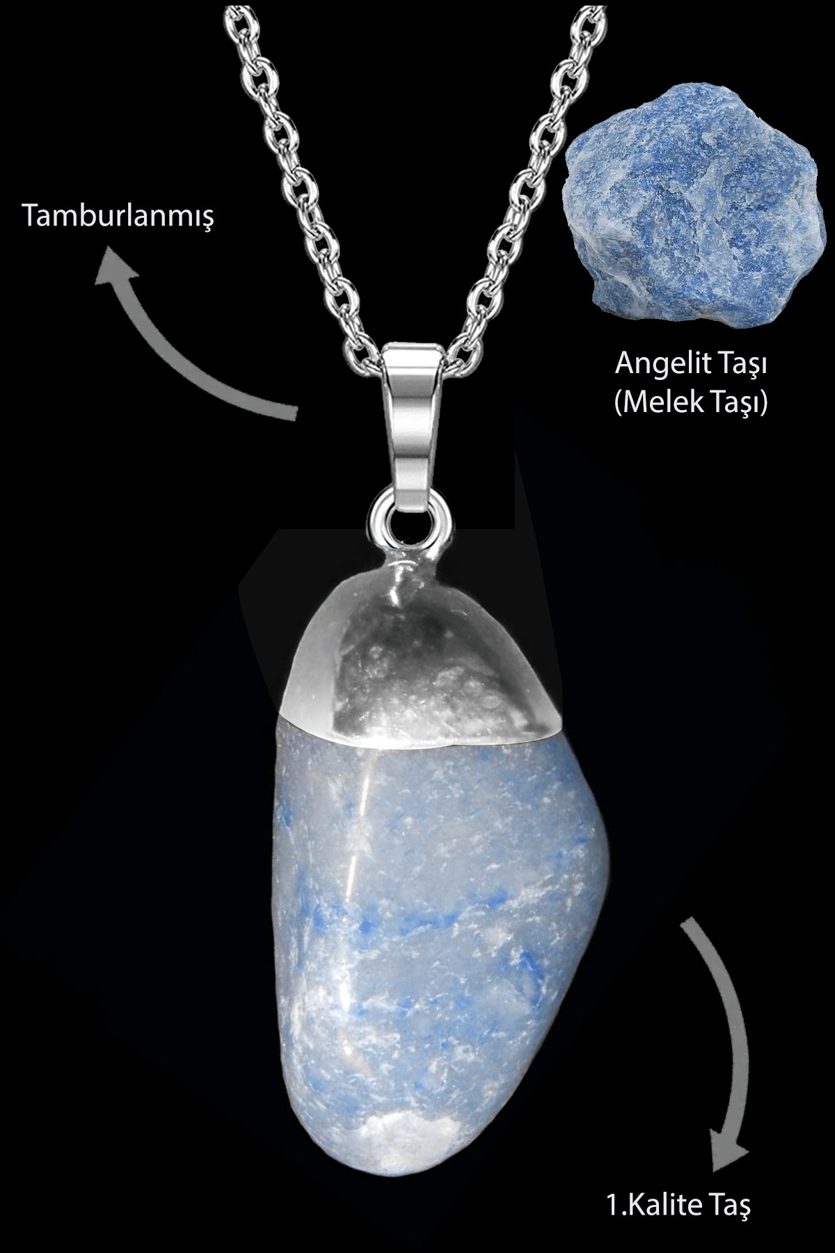 Sertifikalı Tamburlanmış Gerçek Angelit Taşı Kolye (Melek Taşı)