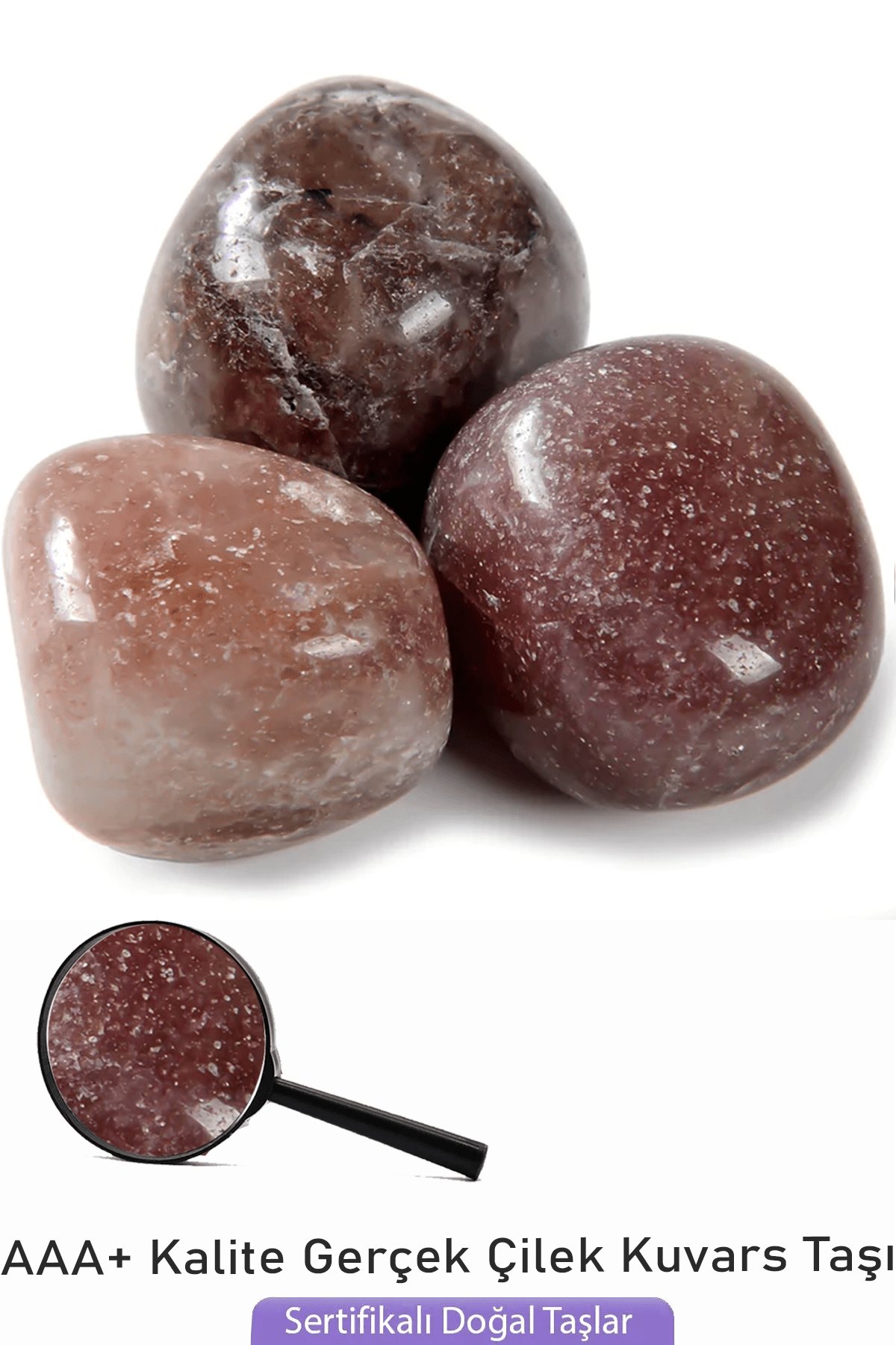 Sertifikalı Tamburlanmış Gerçek Çilek Kuvars Taşı Kütle
