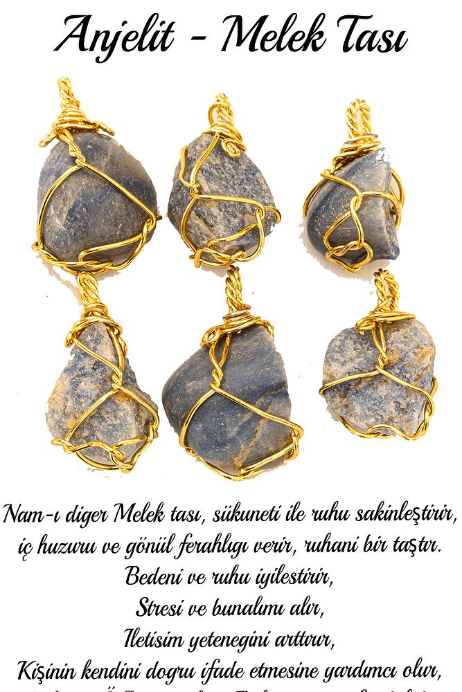 Doğal Anjelit - Angelit Melek Taşı Doğal Taş Kolye, modellerimizin taşlarını Dünya'nın çeşitli ülkelerinden ithal etmekteyiz. Dünya'nın en kaliteli taşlarını özel olarak tasarım ekibimiz tarafınca tasarlamaktayız. Taşın içerisindeki mineraller teniniz ile temas eder ve sizleri sakinleştirir. Sinirinizi stresinizi alır. Pozitif enerjiler verir ve negatif enerjilerinizi yok edecektir. Doğal Taşların hiç biri birbirinin aynısı olmadığı için küçükte olsa farklılıklar gösterebilir. Ürünlerimiz sizlere orijinallik sertifikası ve garanti belgesi ile gönderilmektedir. ''Tesbih Atölyesi'' koruyucu kadife kesesinde gönderilecektir.