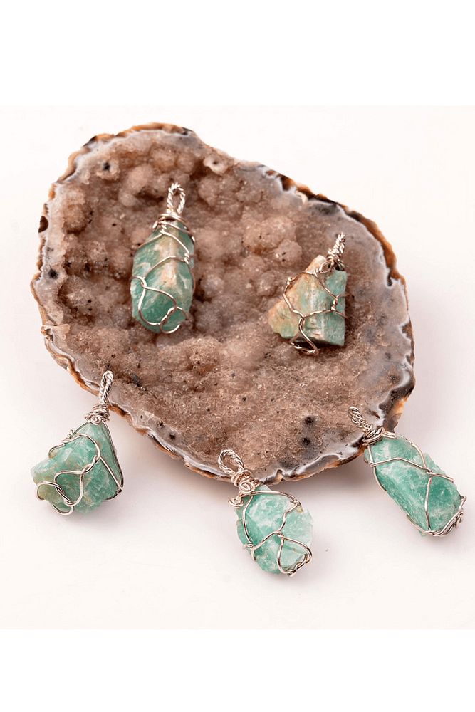Sertifikalı Tel Sargılı Ham Amazonit Taşı Kolye