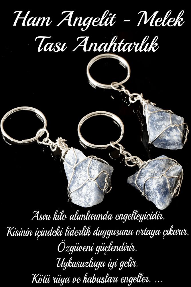 Sertifikalı Tel Sargılı Ham Işlenmemiş Angelit Melek Taşı Anahtarlık