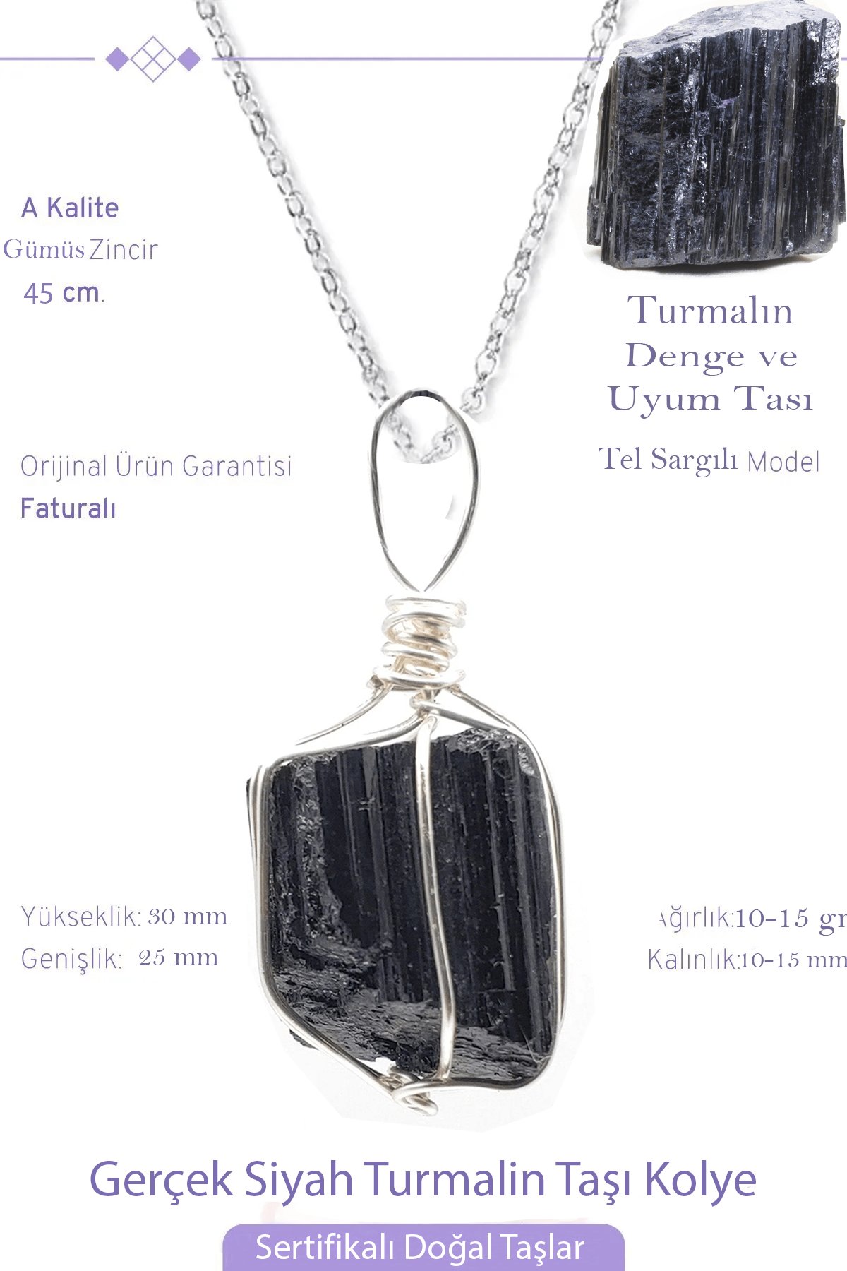 Sertifikalı Tel Sargılı Ham İşlenmemiş Turmalin Taşı Kolye