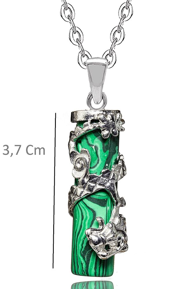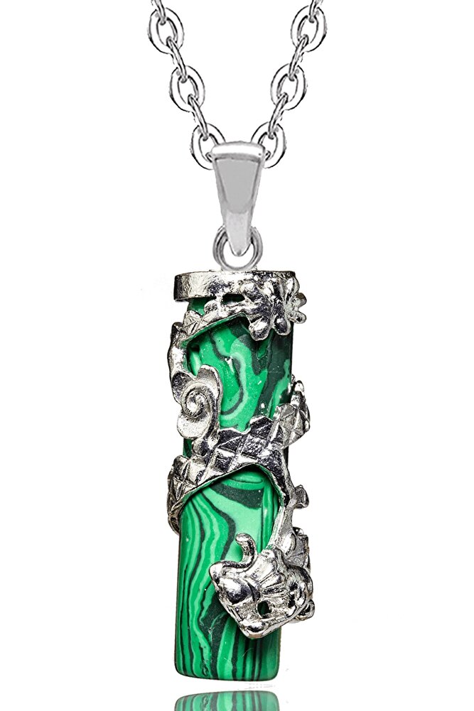 Bu doğal taş kolye tasarımımızda; Yüksek kalite doğal malahit taşı kolye kullanılmıştır. Zincir ölçüsü 50 cm\'dir. Her bayan için uyumludur. Yetişkin ve çocuk için kullanılabilir. %100 Orijinal ve gerçek taştır. Sinirinizi stresinizi alacak, mineral açısından oldukça zengin olduğu için bulunduğu için teniniz ile temas eder etmez aradaki farkı kısa bir süre içinde hissedeceksiniz.