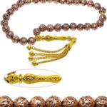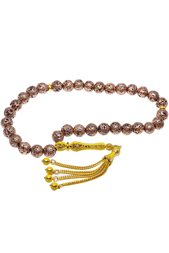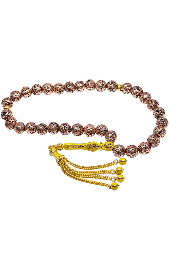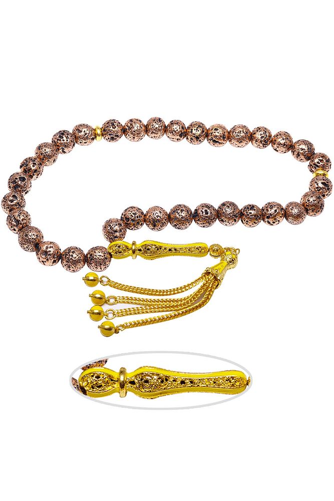 Sertifikalı Telkari Püskül Bakır Renkli Doğal Lav Taşı Tesbih