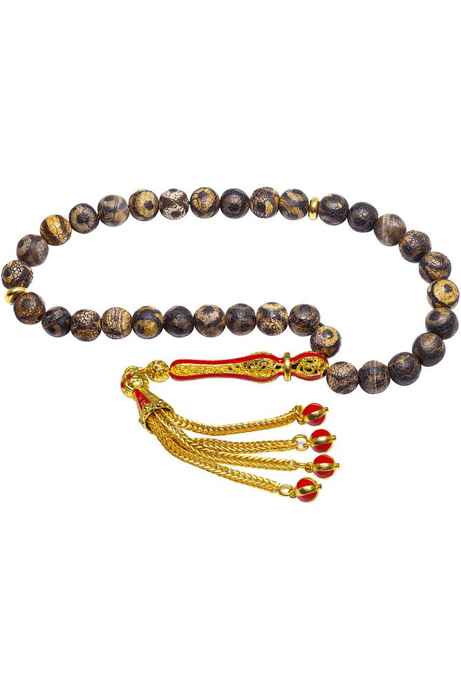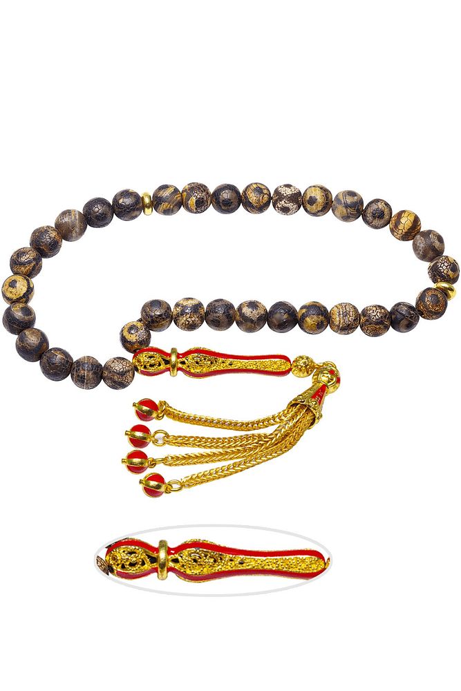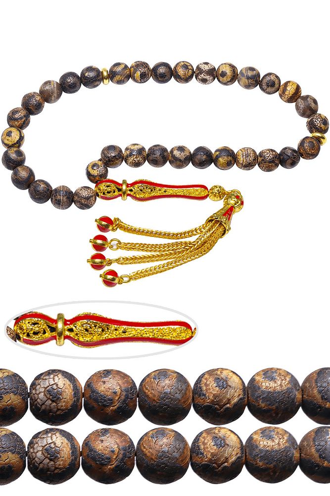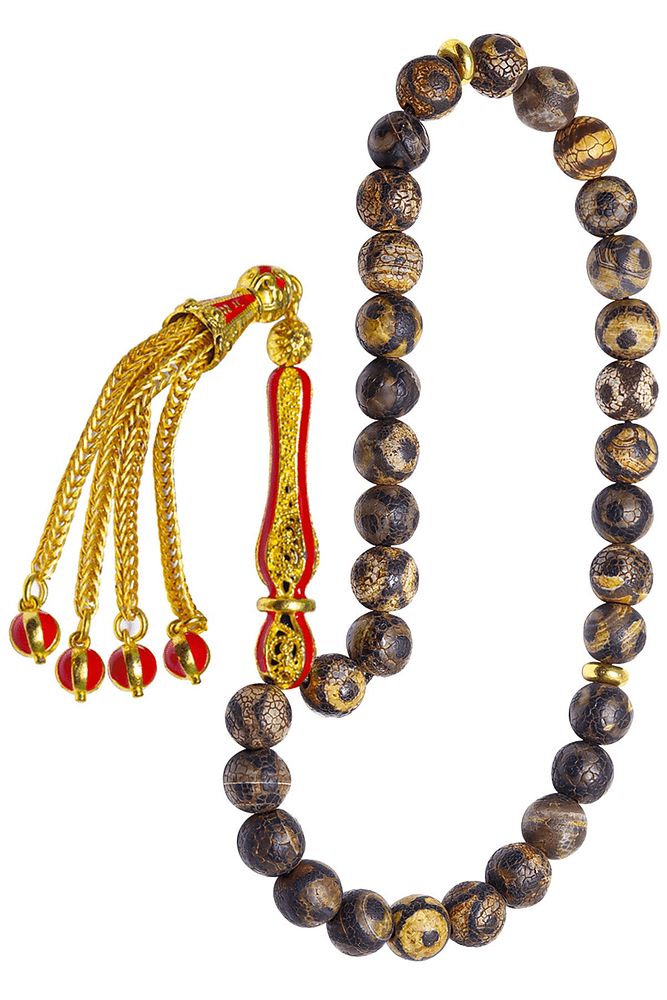 Sertifikalı Telkari Püskül Benekli Doğal Tibet Akik Taşı Tesbih