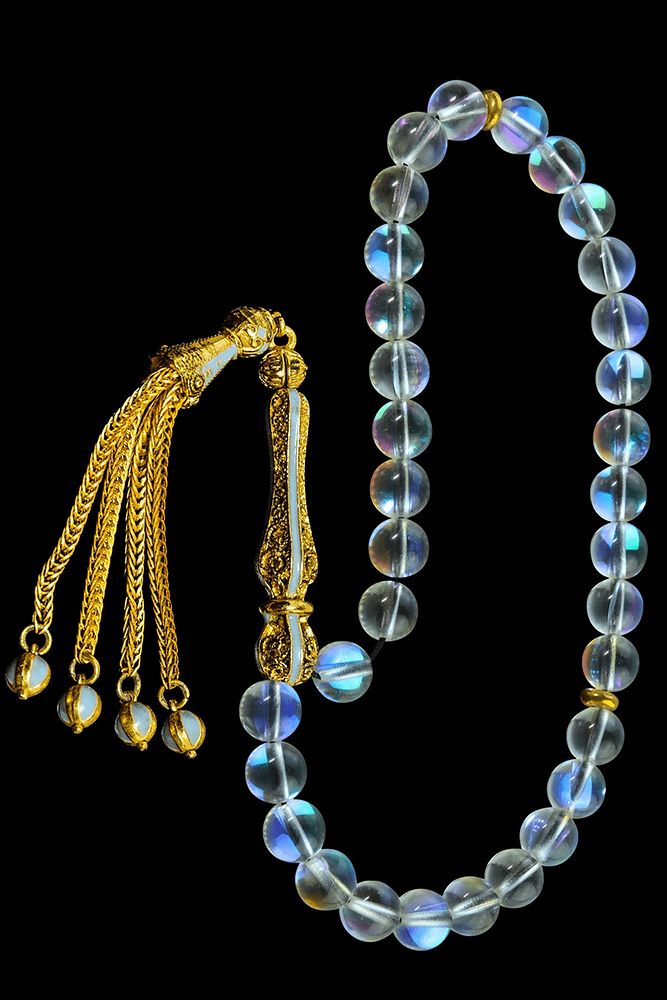 Sertifikalı Telkari Püskül Beyaz Doğal Termal Kuvars Taşı Tesbih
