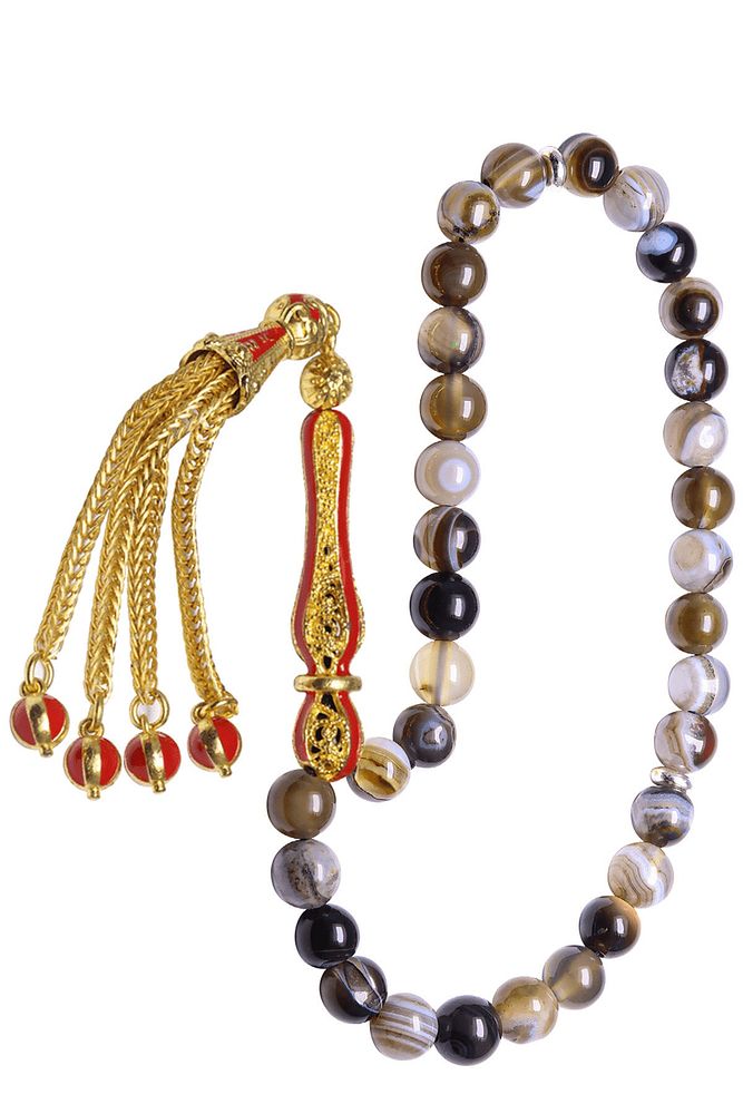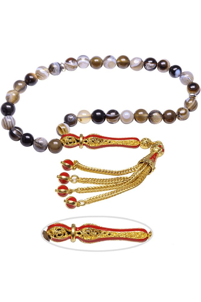 Sertifikalı Telkari Püskül Bostwana Doğal Akik Taşı Tesbih
