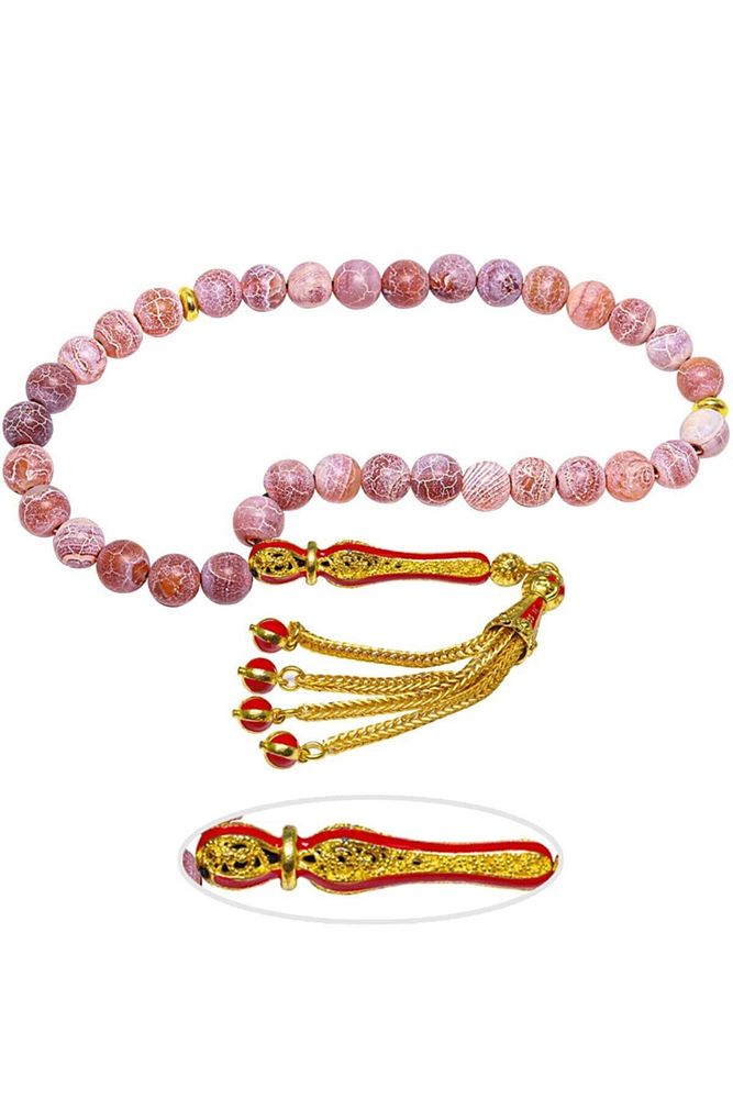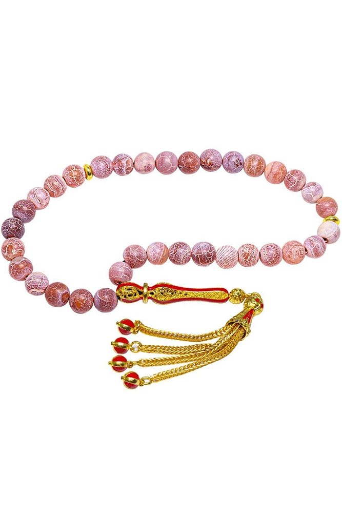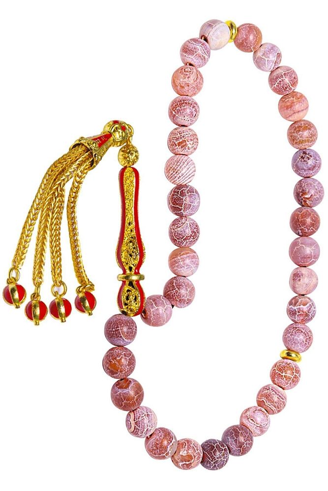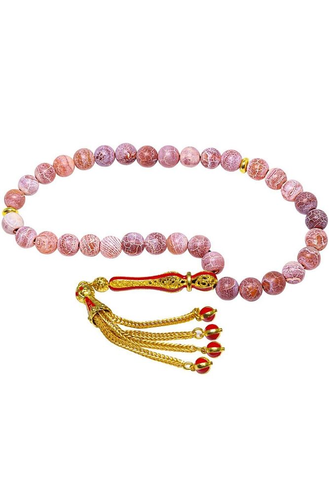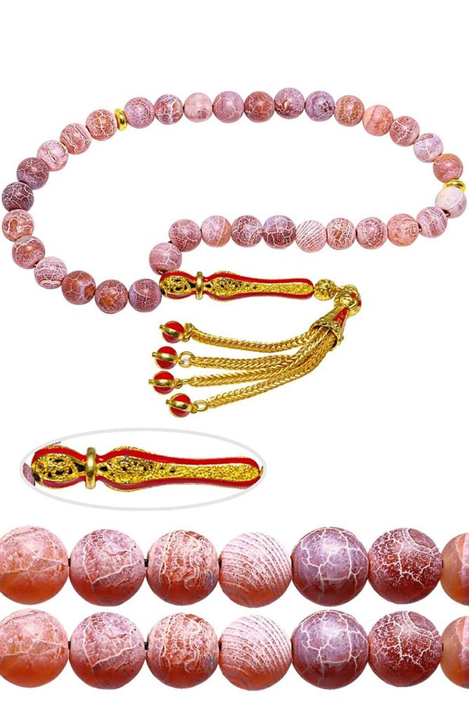 Sertifikalı Telkari Püskül Damarlı Kırmızı Doğal Akik Taşı Tesbih