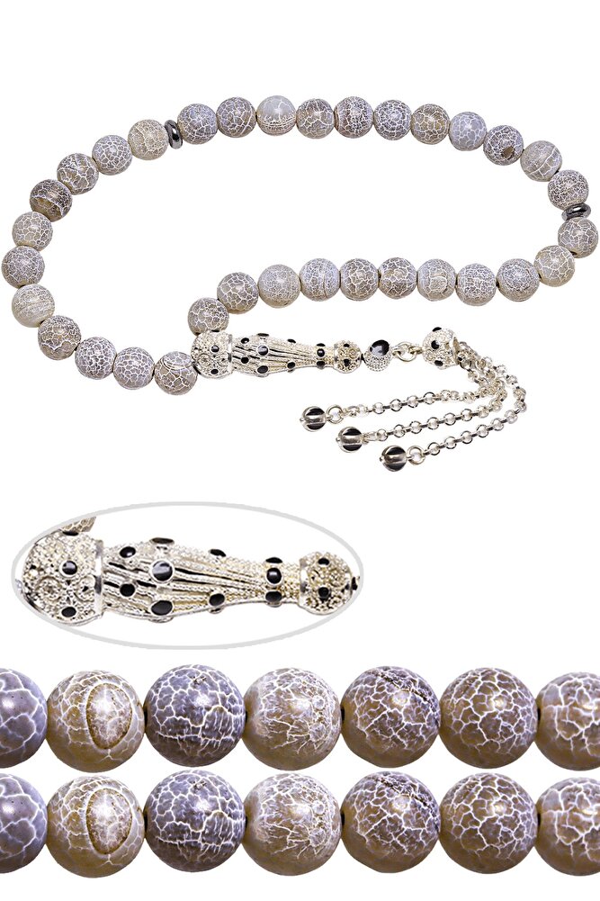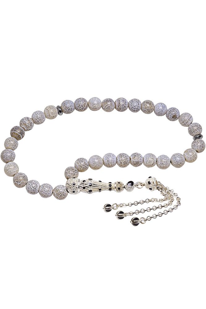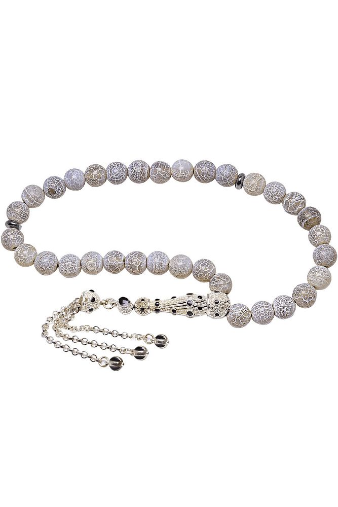 Sertifikalı Telkari Püskül Doğal Gri Akik Taşı Tesbih