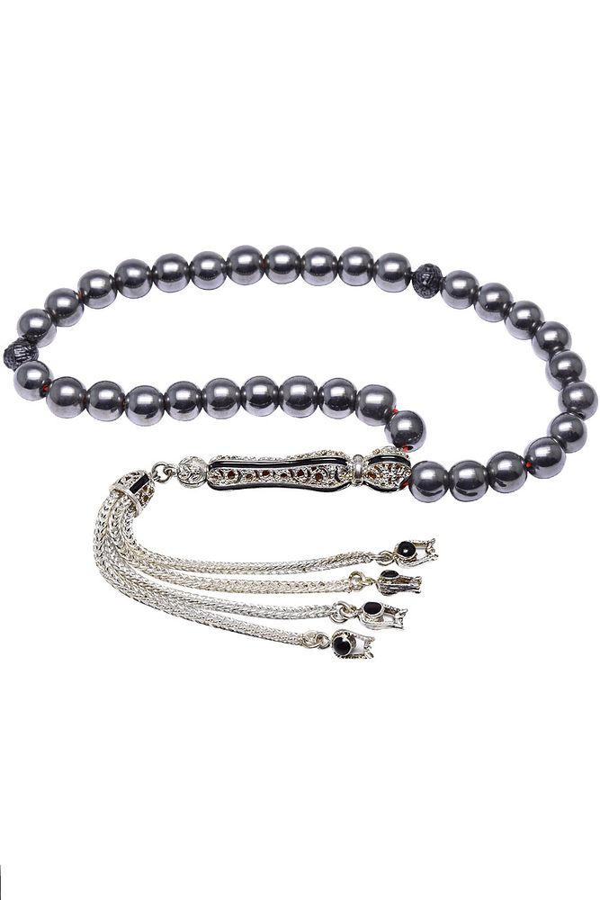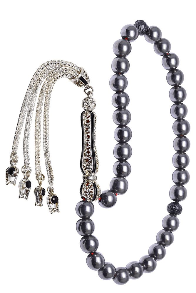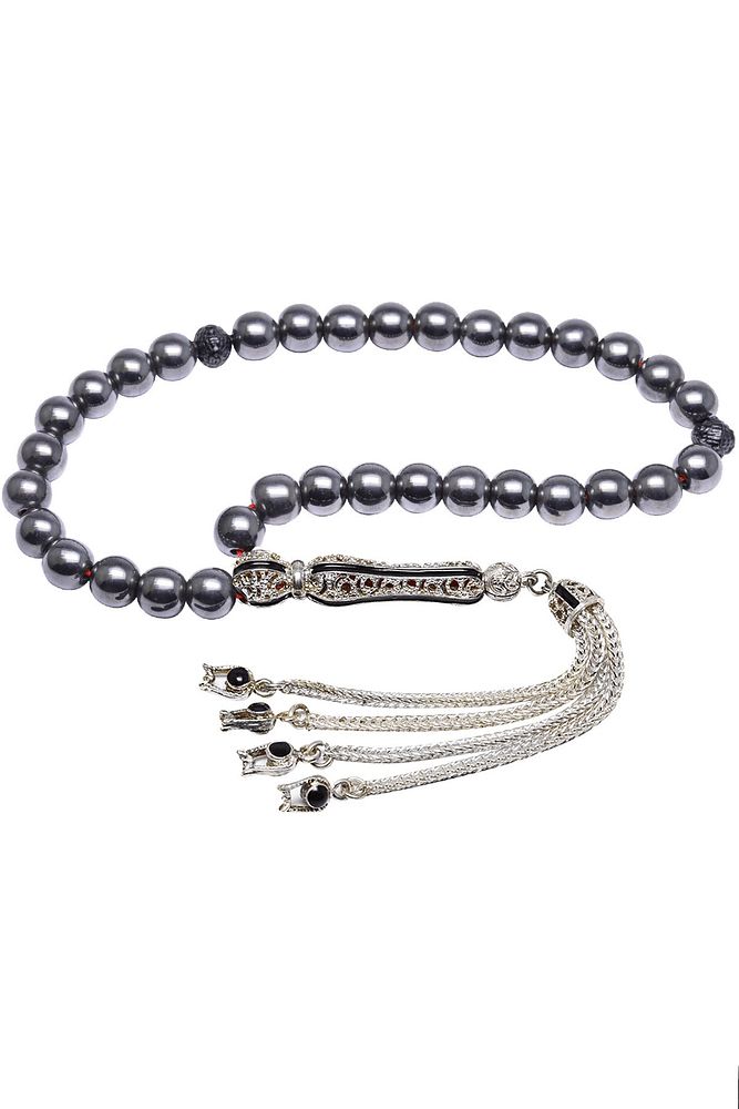 Sertifikalı Telkari Püskül Doğal Hematit Taşı Tesbih