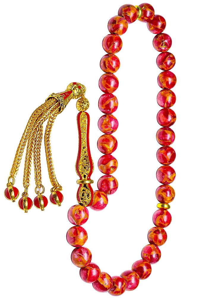 Ürün ya da Doğal Taş Açıklaması (Negatif Enerji İtici Pozitif Enerji Çekici Taş) Opal tesbih modelleri, ''Tesbih Atölyesi'' Atölyelerinde usta ellerde üretilmektedir. Tasarımlarımızda Dünya'nın en kaliteli doğal taşlarını kullanmaktayız. Ürünlerimiz el işciliği olduğu için sınırlı sayıda üretilmektedir. Tasarımlarımızda kullandığımız doğal taşların hiç biri birbirinin aynısı olmadığı için küçükte olsa farklılık gösterebilir. Bu tasarımda; Kırmızı Opal taşı kullanılmıştır. Sarı kırmızı mineli 24 ayar altın kaplama imame ve püskül seti kullanılmıştır. Çift kaplama atıldığı için renk atmaz ve kararmaz bir yapıya sahiptir. Yedek ip ile gönderim sağlanır. Üretildiği Taş; Opal Taşı; Ana Renk; Doğal Renk; Ağırlık; 20-30 gr; Tane Şekli; 8x8 mm; Tane Ölçüsü; Küre Kesim; Toplam Uzunluk; 20-30 cm; İmame ve Püskül Maddesi; Düşük Ayar Gümüş;