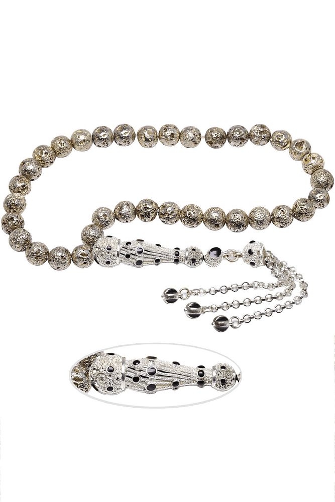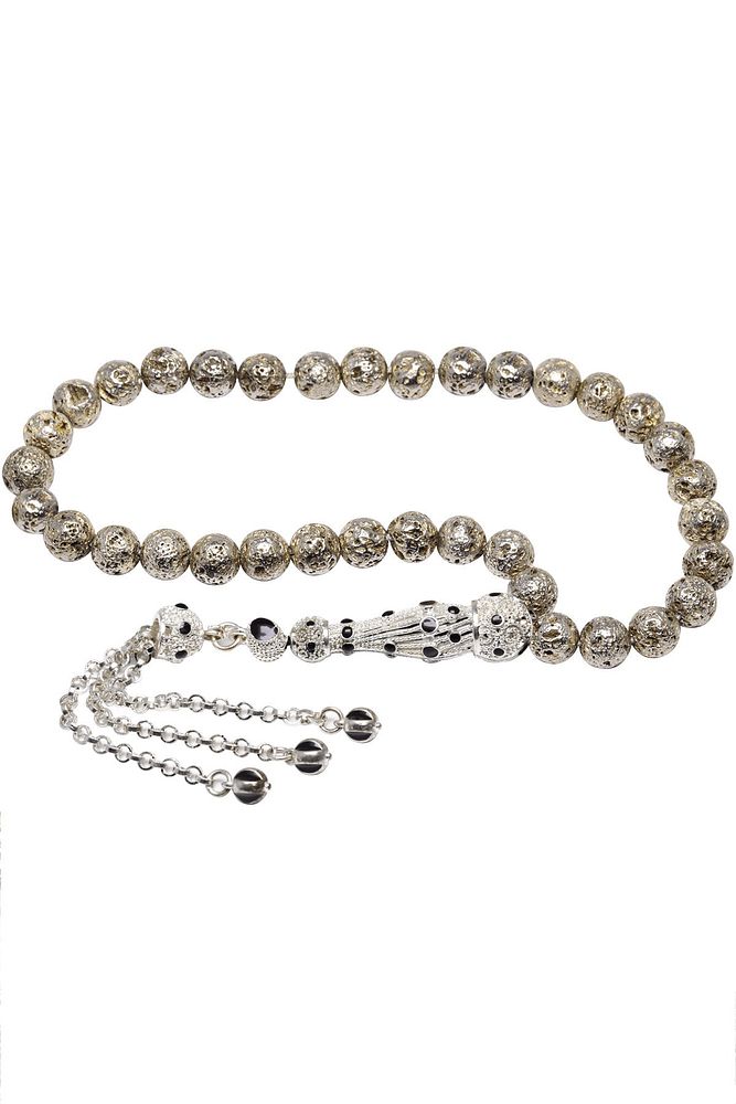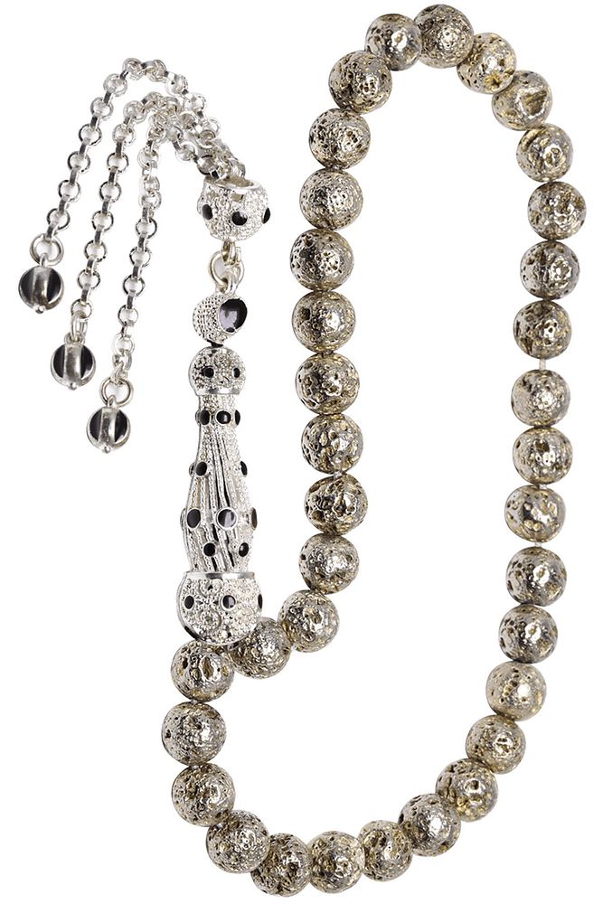 Sertifikalı Telkari Püskül Gümüş Doğal Yanardağ Tüfü Volkanik Lav Taşı Tesbih