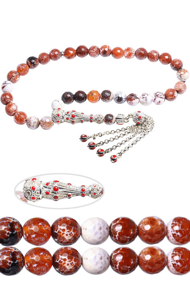 Sertifikalı Telkari Püskül Iri Boy Kırmızı Doğal Akik Taşı Tesbih