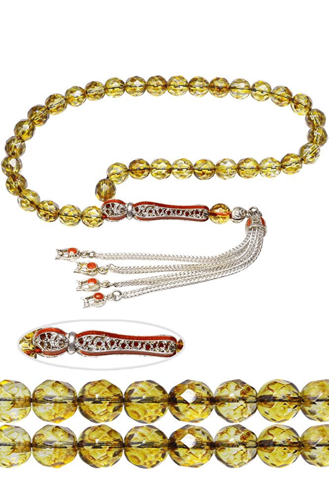 Sertifikalı Telkari Püskül Sarı Doğal Kuvars Taşı Tesbih