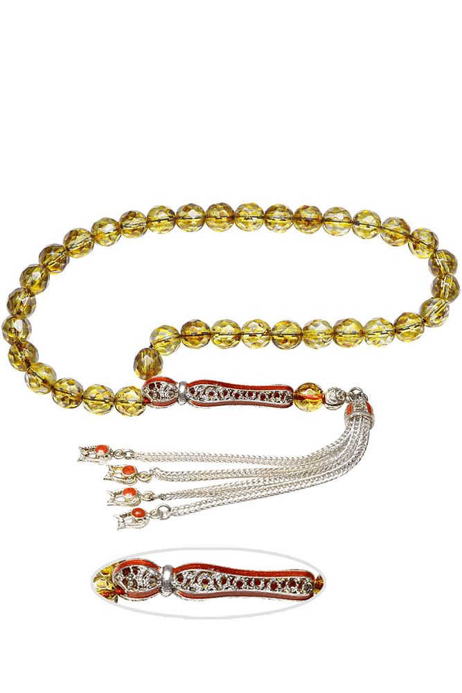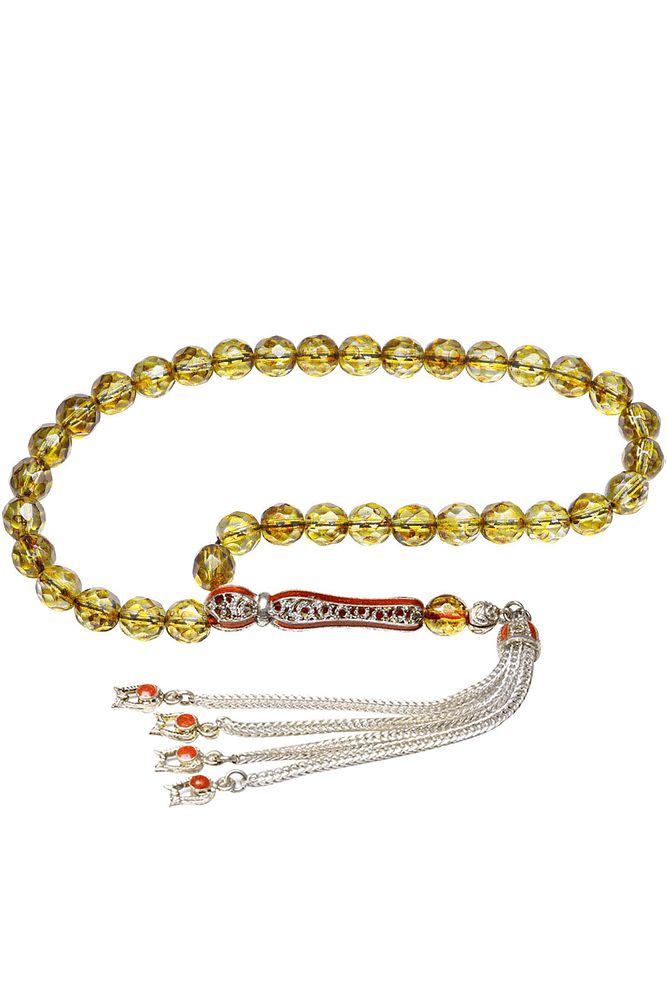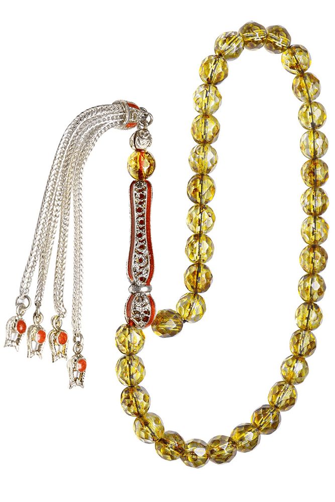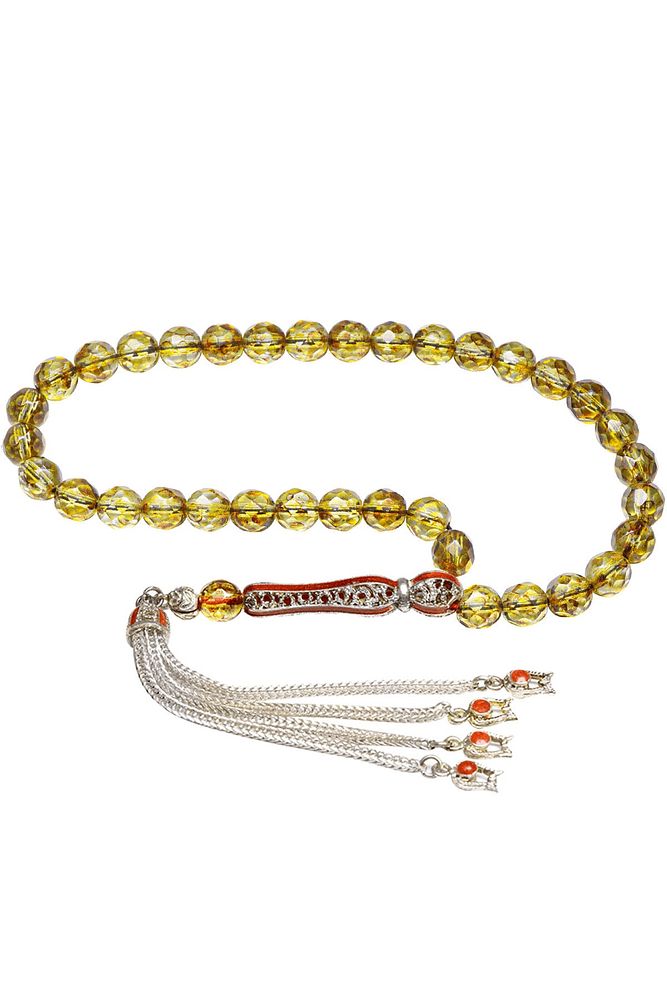 Sertifikalı Telkari Püskül Sarı Doğal Kuvars Taşı Tesbih