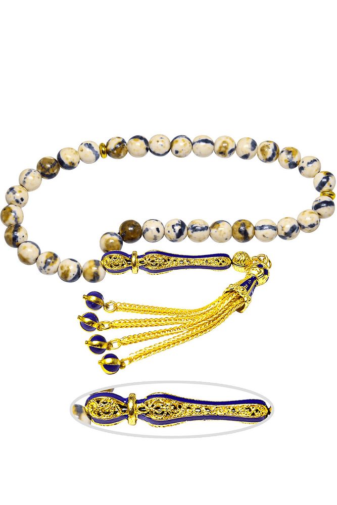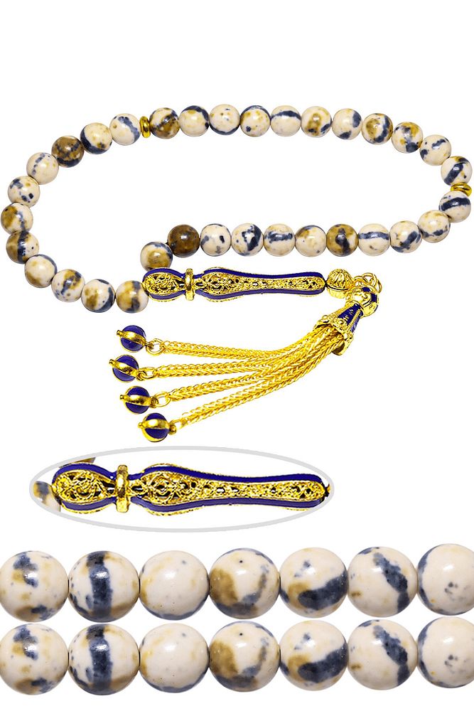 Sertifikalı Telkari Püsküllü Doğal Jasper Yıldız Taşı Tesbih