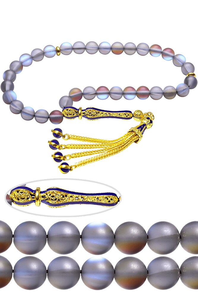 (Para - Sağlık - Pozitif Enerji Taşı); Kuvars tesbih modelleri, ''Tesbih Atölyesi'' Atölyelerinde ustalarımız tarafından kuru torna işciliği ile elde özen ile tane tane işlenmektedir. Ürünlerimiz el işciliği olduğu için sınırlı sayıda üretilmektedir. Tasarımlarımızda kullandığımız taşlar Dünya'nın en kaliteli doğal taşlarını kullanmaktayız. Tasarımlarımızda kullandığımız doğal taşların hiç biri birbirinin aynısı olmadığı için küçükte olsa farklılık gösterebilir. Doğal taşlar vücudunuza temas ettiği anda negatif enerjilerinizi alır ve pozitif enerjiler verir.; Bu tasarımda; Füme renkli doğal kuvars taşı ve Sarı siyah mineli 24 ayar altın kaplama imame ve püskül seti kullanılmıştır. Çift kaplama atıldığı için renk atmaz ve kararmaz bir yapıya sahiptir. Yedek ip ile gönderim sağlanır. ; Üretildiği Taş; Kuvars; Ana Renk; Doğal Renk; Ağırlık; 20-30 gr; Tane Şekli; 8x8 mm; Tane Ölçüsü; Küre Kesim; Toplam Uzunluk; 20-30 cm; İmame ve Püskül Maddesi; Düşük Ayar Gümüş;