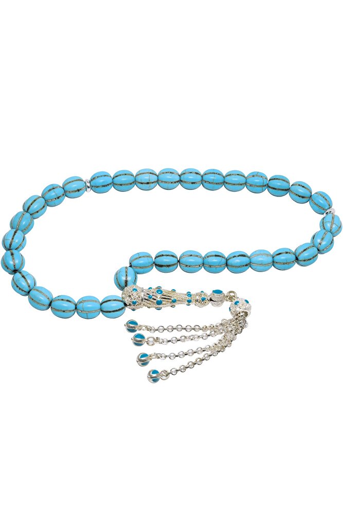 Sertifikalı Telkari Püsküllü Doğal Turkuaz Firuze Taşı Tesbih