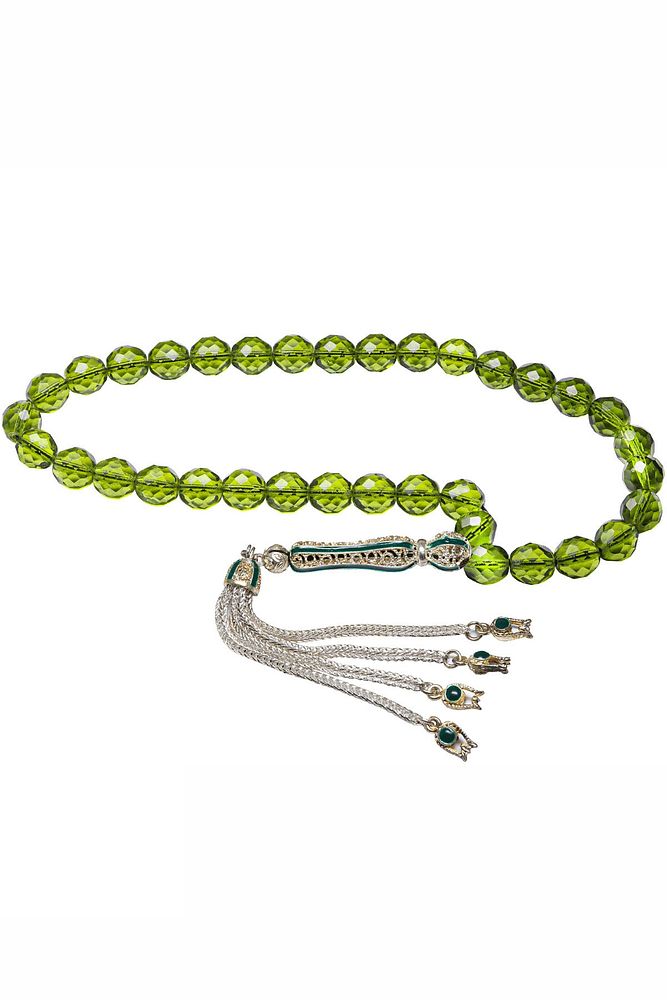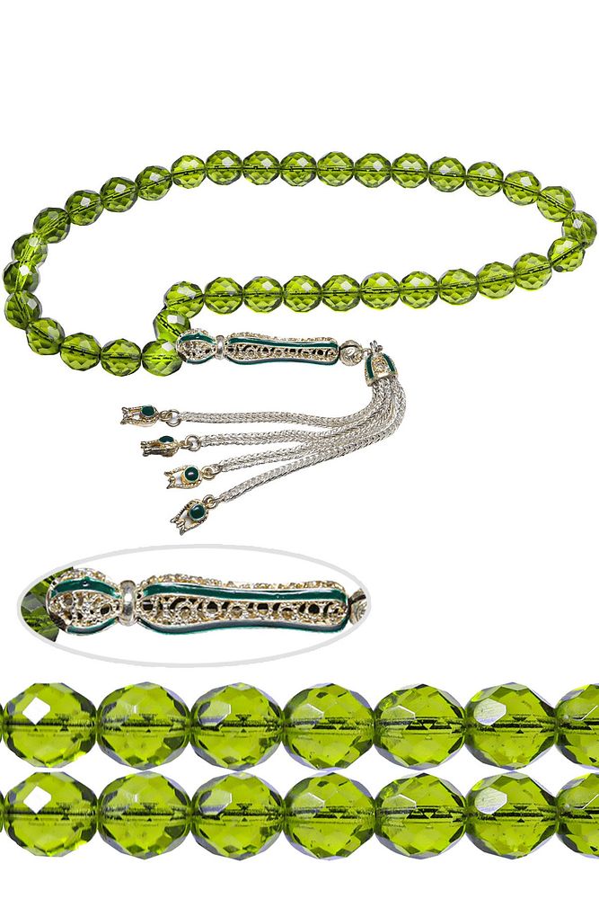 Sertifikalı Telkari Püsküllü Iri Boy Yeşil Doğal Kuvars Taşı Tesbih