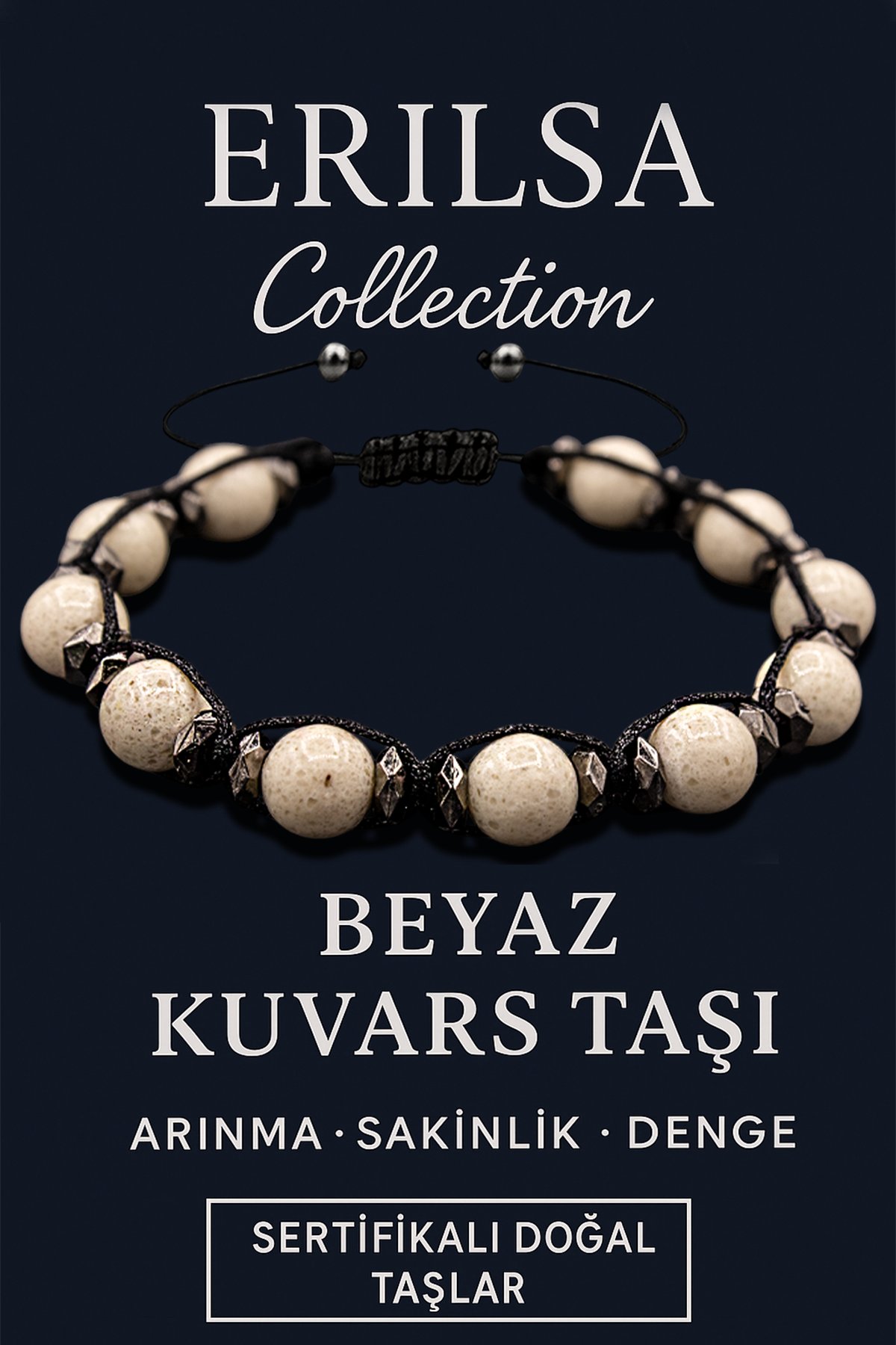 Sertifikalı Terahertz & Beyaz Kuvars Taşı Bileklik – Arınma, Huzur ve Zihinsel Temizlik