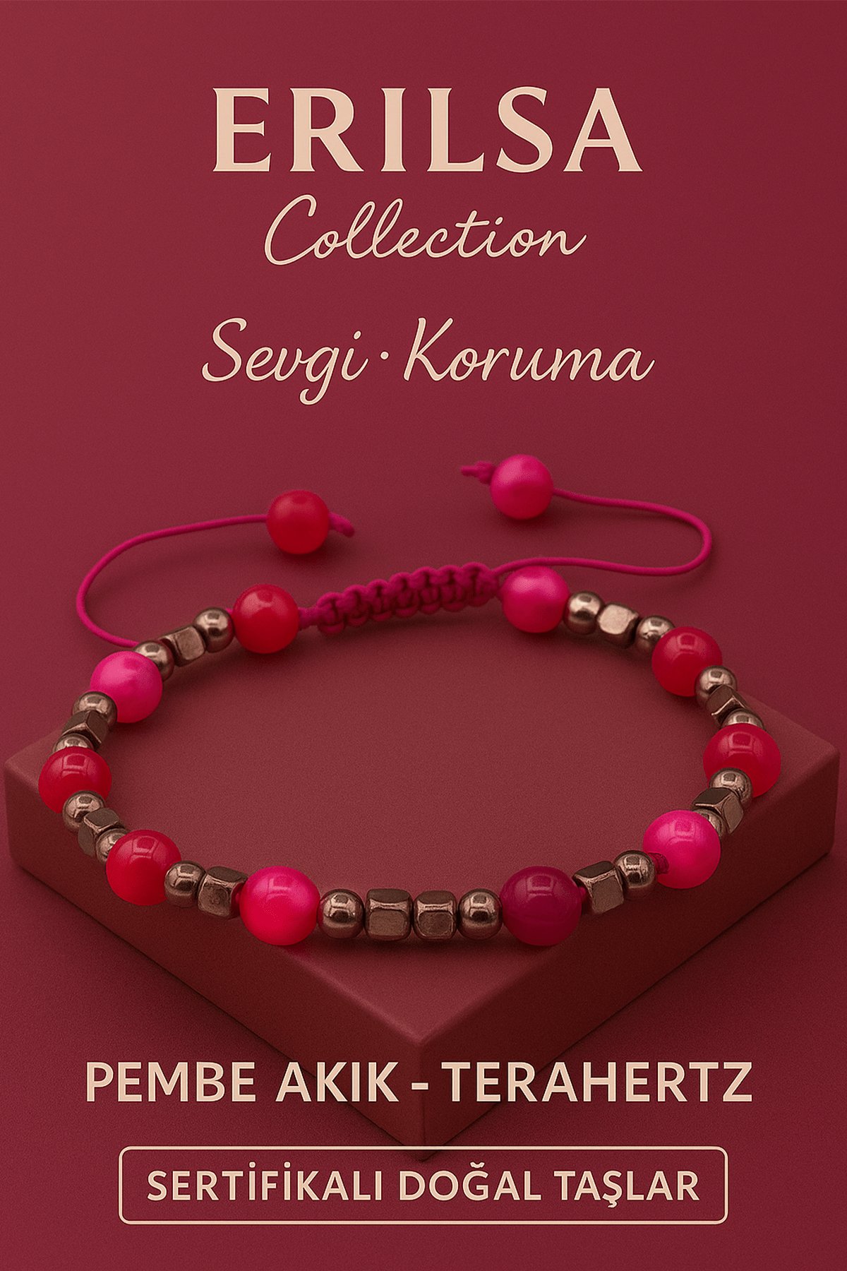 Sertifikalı Terahertz Pembe Akik Taşı Bileklik – Sevgi Koruma ve Pozitif Enerji Doğal Taş
