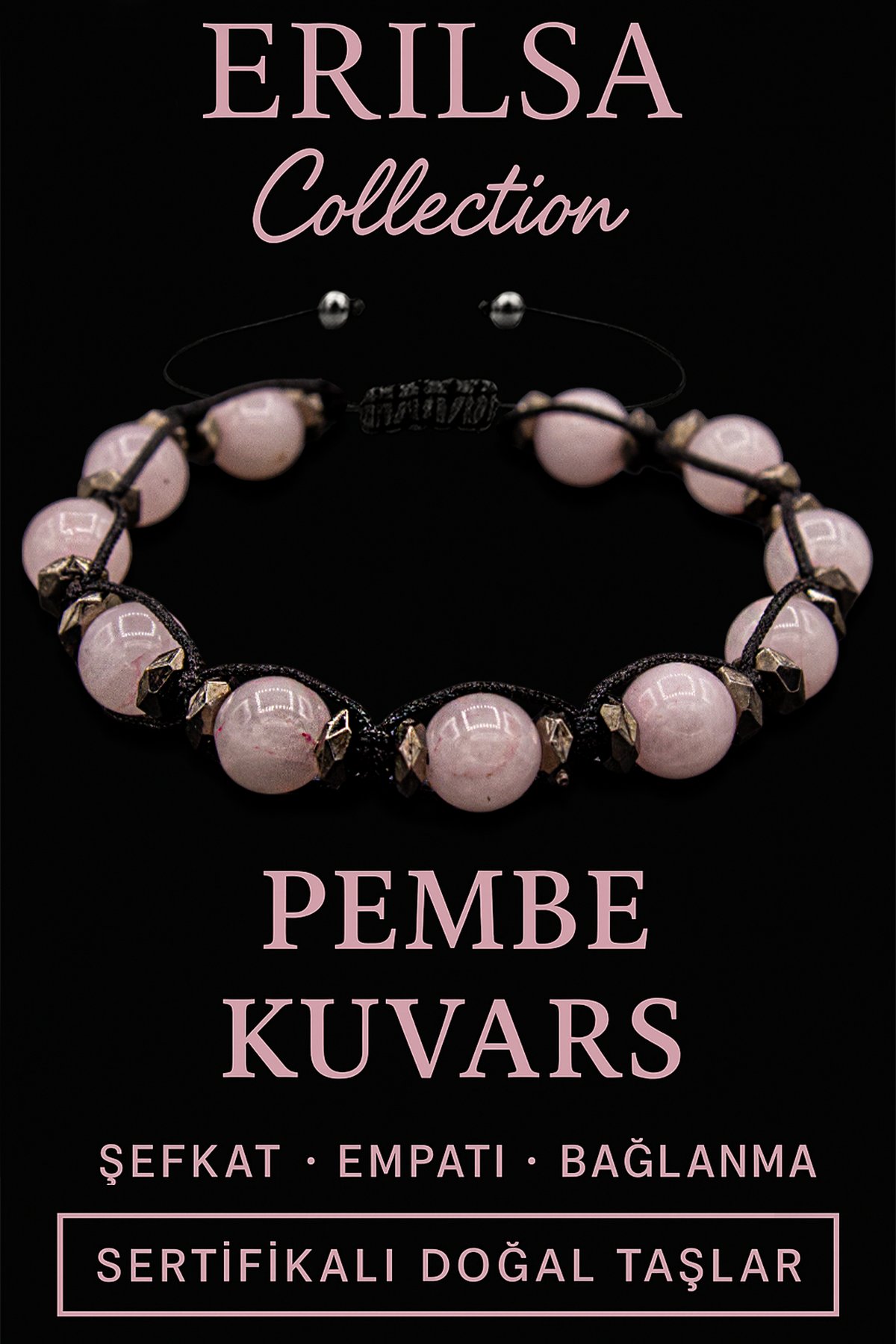 Sertifikalı Terahertz & Pembe Kuvars Taşı Bileklik – Sevgi, Şefkat ve Enerji Koruması
