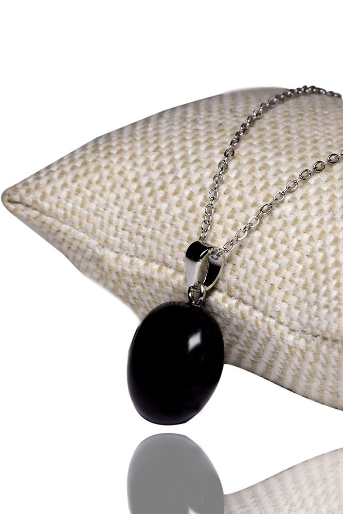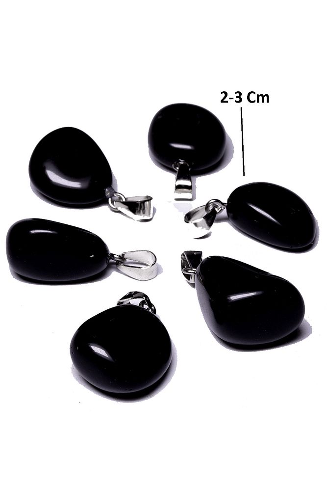 Sertifikalı Tımbıl Model Siyah Turmalin Taşı Doğal Taş Kolye - Gümüş Aparatlı