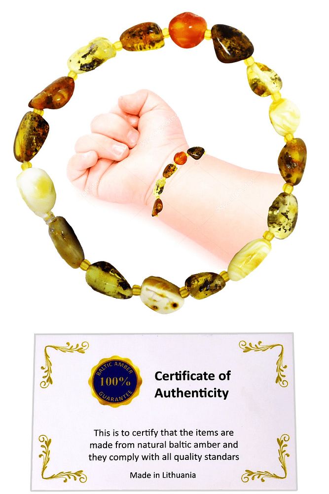 Sertifikalı Toprak Fosilli Doğal Damla Bebek Kehribar Diş Bileklik
