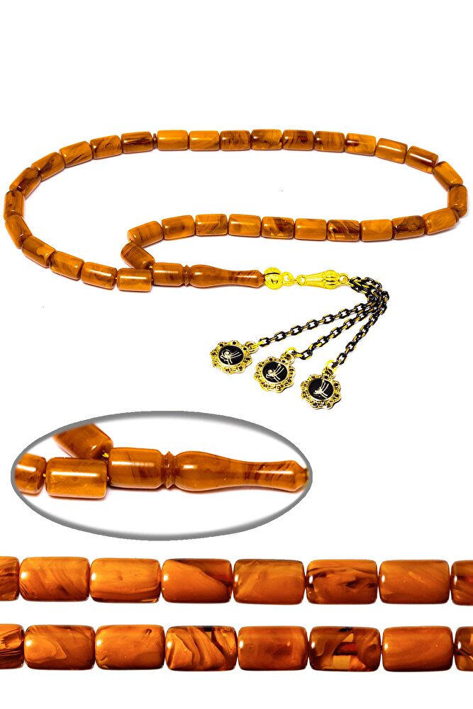 Sertifikalı Turuncu Renkli Osmanlı Benzetmesi Çubuk Sıkma Kehribar Tesbih