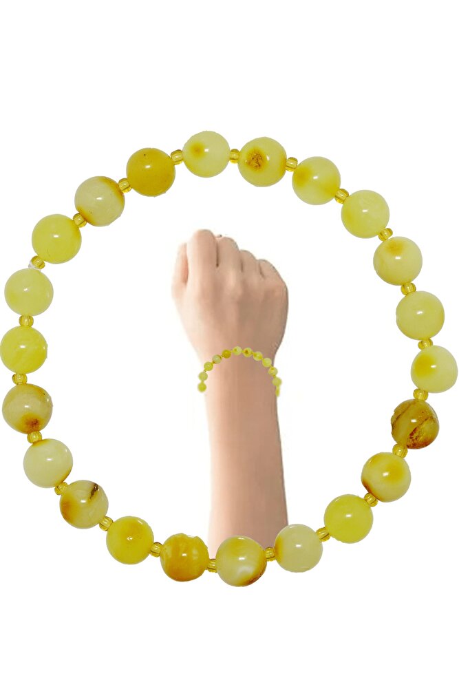 Ürün ya da Doğal Taş Açıklaması (Sinir, Stres, Baş Ağrısı, Endişe ve Korku Taşı) Doğal Taş Bileklik, modelleri ''Tesbih Atölyesi'' Atölyelerinde usta ellerde siz değerli müşterimiz için özenle hazırlanmaktadır. Ürünlerimizin tamamı el emeği olup sınırlı sayıda üretilmektedir. Tasarımda kullanılan taşların her birini farklı ülkelerden ithalat etmekteyiz. Dünya'nın en kaliteli taşlarını tasarımlarımızda kullanmaktayız. Orijinallik ve garanti belgesi adınıza gönderilir. Tasarımda kullandığımız doğal taşların hiç biri birbirinin aynısı olmadığı için küçükte olsa farklılıklar gösterebilir. Bu tasarımda; Ukrayna Damla Kehribar Taşı kullanılmıştır. Makrome ipi 30 kat ip örülerek yapıldığı için asla kopmaz ve aşınmayacak her bileğe göre ayarlanabilir boyuttadır. Üretildiği Taş; Damla Kehribar Taşı; Ana Renk; Doğal Renk; Ağırlık; 5-10 Gr; Bileğime Uyar Mı?; Her Bileğe Uyumlu; Tane Ölçüsü; 7x7mm;